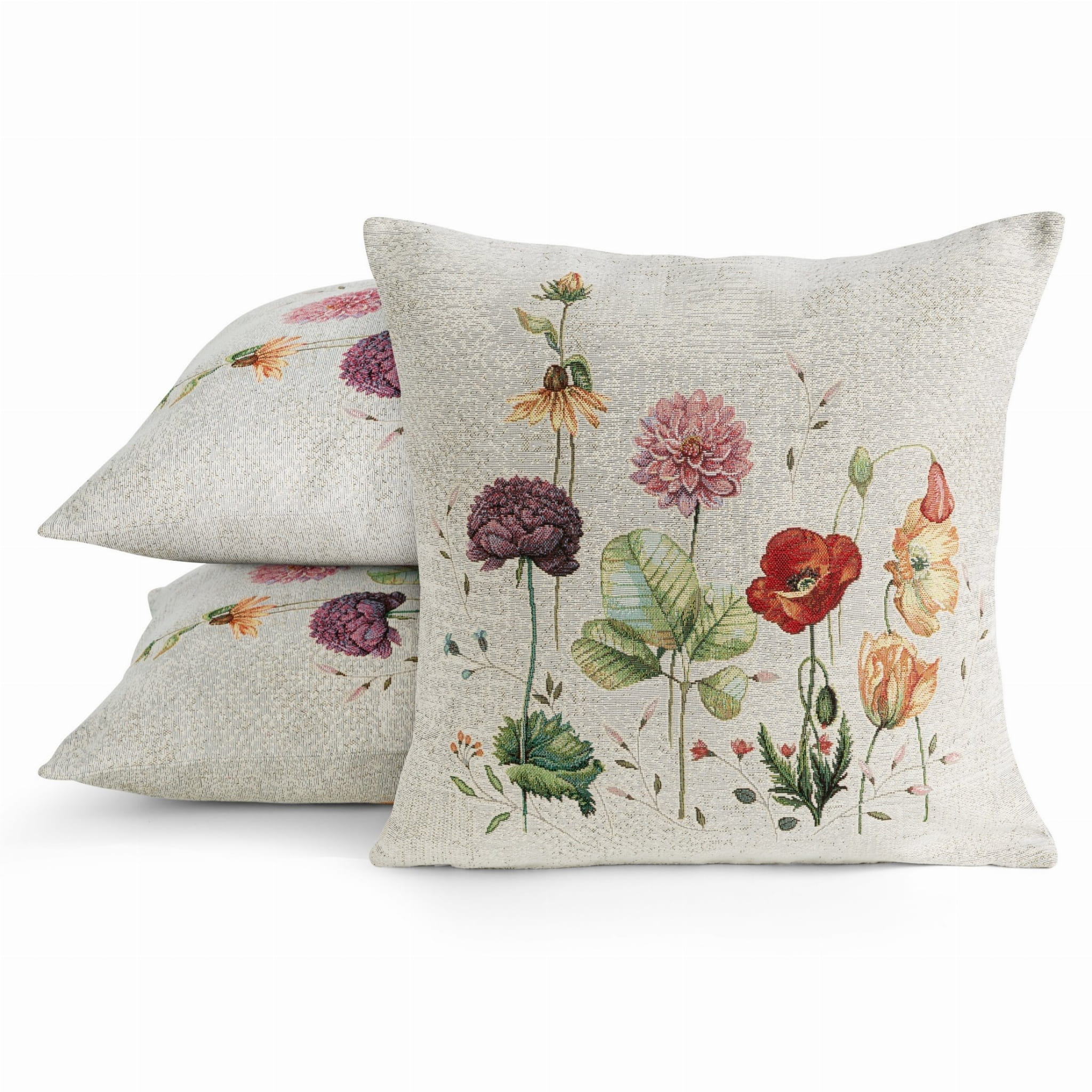 Piękna dekoracyjna poszewka Gobelin 1239 popielata z motywem kwiatów 45x45 na poduszkę elegancko ozdobi Twoje wnętrze. Zasuwana na zamek błyskawiczny. Poszewka jednostronna - z tyłu jednobarwna tkanina.