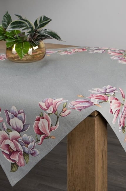 Piękny, dekoracyjny obrus Gobelinowy 1214 popielaty z motywem kwiatów 100x100 na stół elegancko ozdobi Twoje wnętrze. Ekskluzywny bieżnik jest dopełnieniem i ozdobą każdego zastawionego stołu. Wykonany z precyzją świetnie wygląda i eksponuje każdą elegancką zastawę. Kwadrat będzie się cudownie prezentował w tradycyjnych wnętrzach, jak i w nowocześnie urządzonych pomieszczeniach.