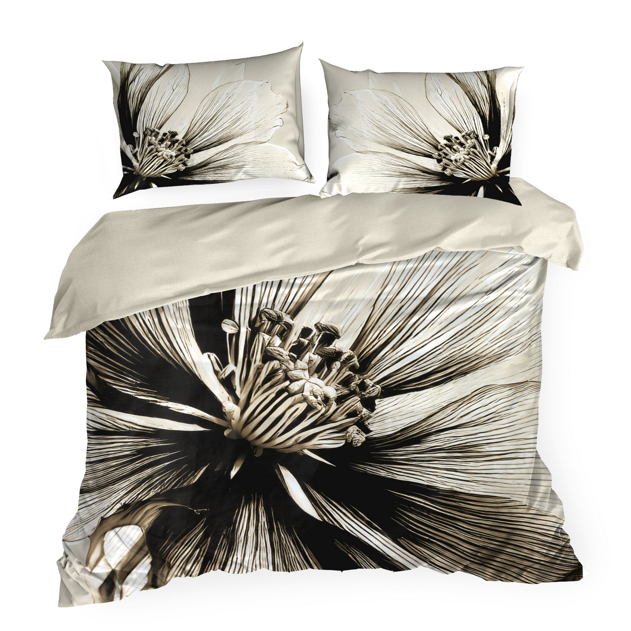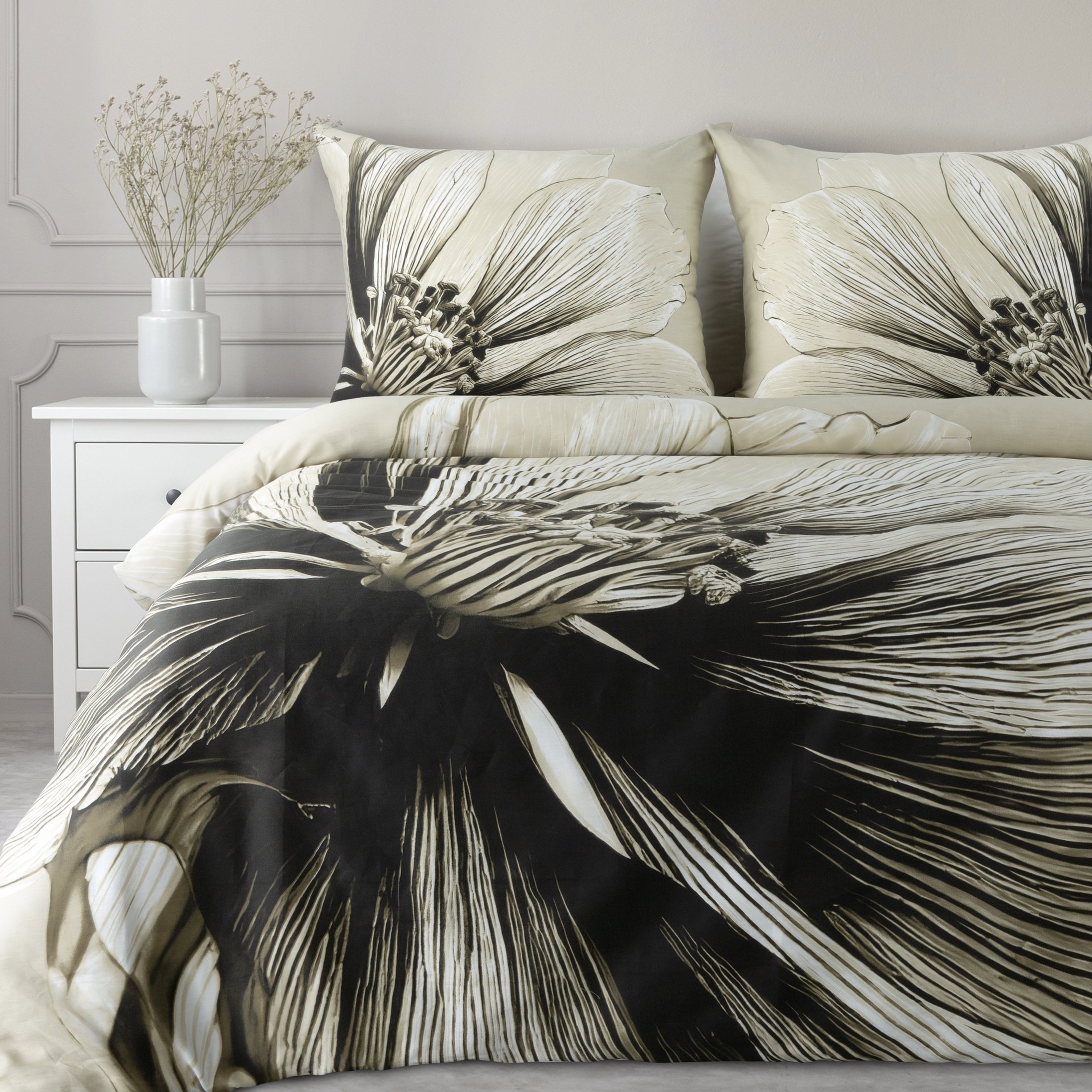 Komplet pościeli Spring 78, uszyto z wysokiej jakości satyny bawełnianej z nadrukiem kwiatów. Pościel została wyprodukowana na zlecenie marki Eurofirany. Nowoczesna technika nadruku rotacyjnego, gwarantuje wyrazisty wzór, nasycone kolory czerni to niezwykłe przejścia kolorystyczne które sprawia, że nadruk nie traci swojej intensywności, nawet po wielu praniach. Proces sanforyzacji, daje gwarancję niezmienności rozmiaru, dzięki niemu pościel nie kurczy się nawet po wielu praniach. Pościel o gramaturze 115g/m² nie podrażnia skóry, jest przewiewna i niezwykle miła dla ciała.