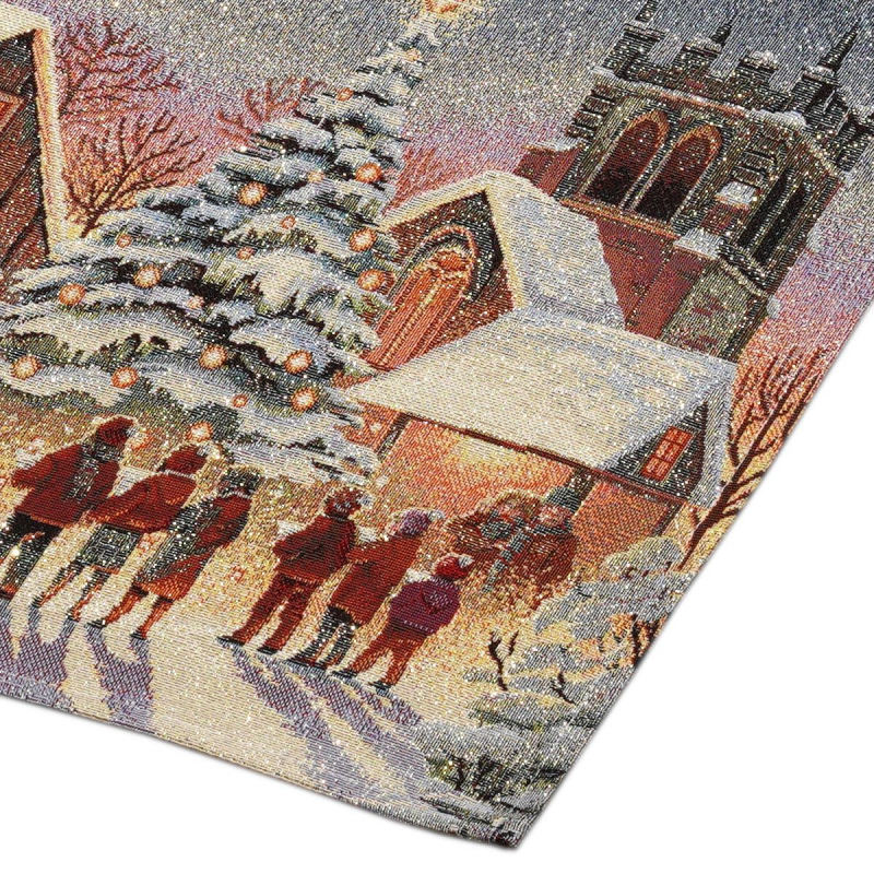 Ekskluzywny obrus Gobelin Przy Kościele jest dopełnieniem i ozdobą każdego zastawionego stołu. Wykonany z precyzją z plamoodpornej tkaniny świetnie wygląda i eksponuje każdą elegancką zastawę z efektownymi zdobieniami. Będzie się cudownie prezentował w tradycyjnych wnętrzach, jak i w nowocześnie urządzonych pomieszczeniach. Produkt wyprodukowany w Polsce. Posiada połyskującą nić.