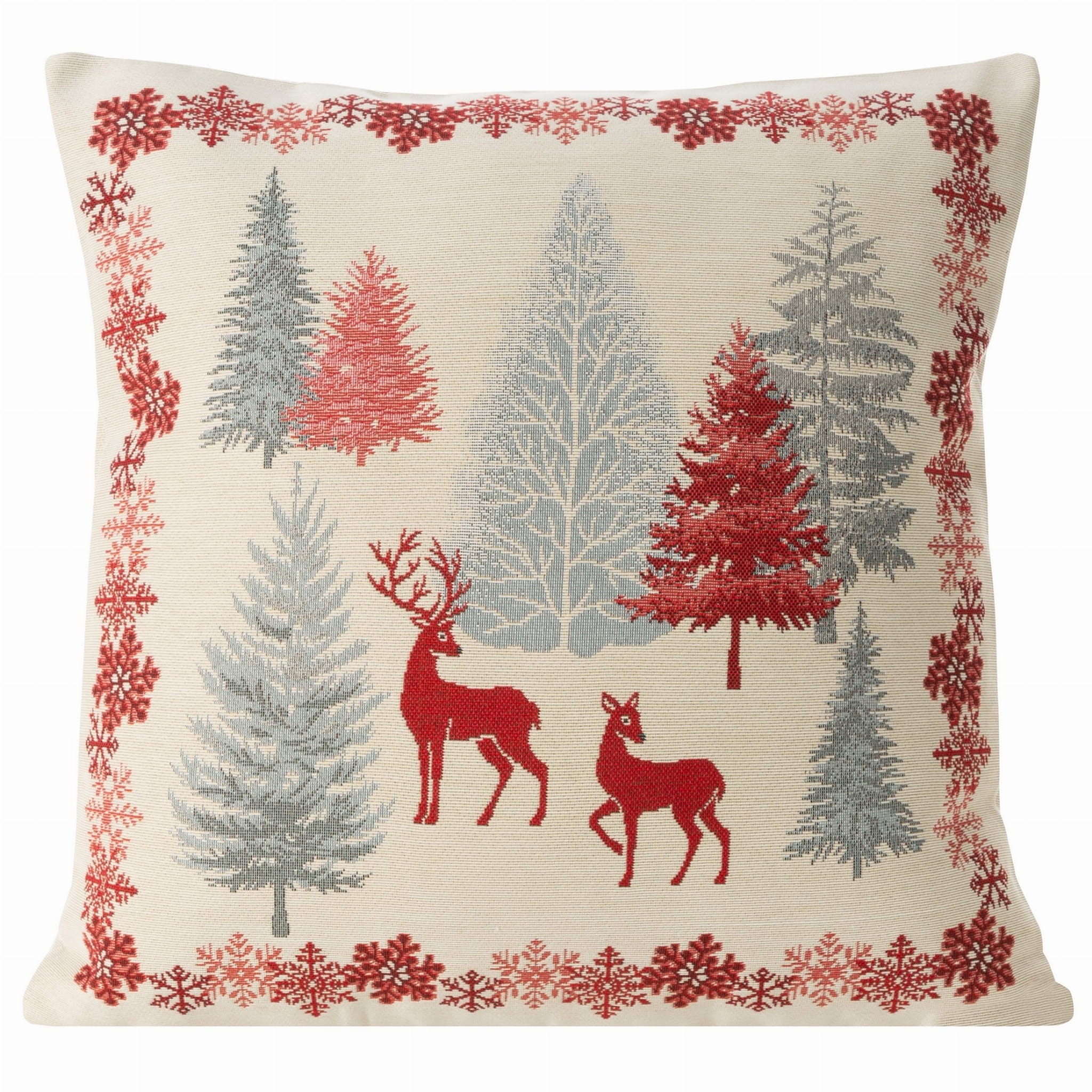 Piękna dekoracyjna poszewka Gobelin Renifery 45x45 Eurofirany na poduszkę elegancko ozdobi Twoje wnętrze. Zasuwana na zamek błyskawiczny. Poszewka jednostronna - z tyłu jednobarwna tkanina.