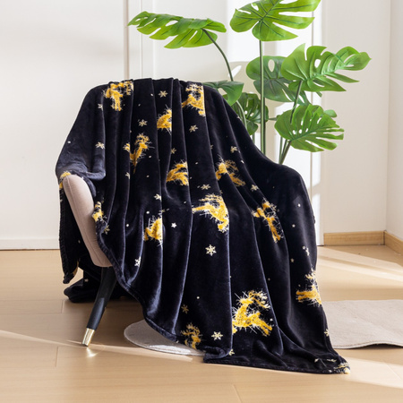 renifery złote koc świąteczny 160x200 COTTON WORLD