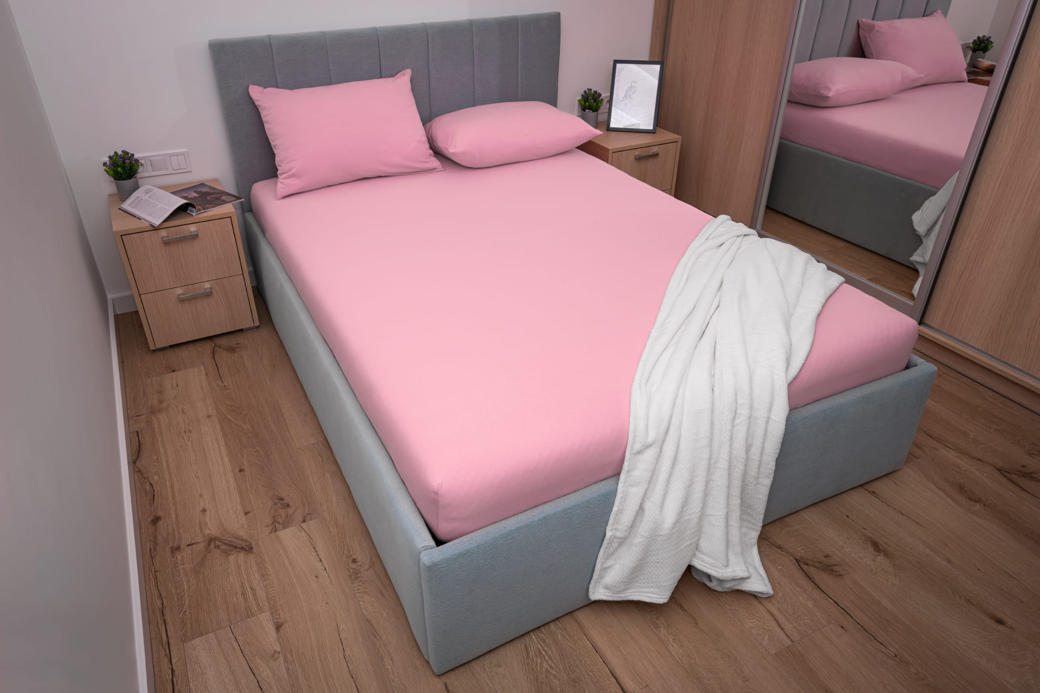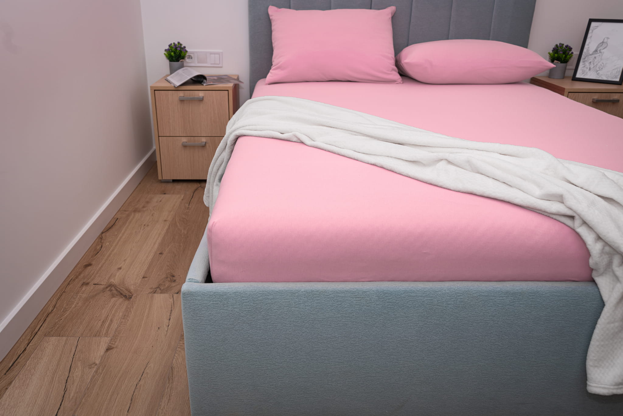 Prześcieradło jersey z gumką w kolorze jasno różowym wykonane zostało z materiału jersey z wysokiej jakości przędzy czesanej składającej się w 100% z bawełny. Dzięki wykonaniu z naturalnych włókien bawełnianych prześcieradło bardzo dobrze reguluje temperaturę ciała co zapobiega nadmiernemu poceniu się skóry. Prześcieradło jersey z gumką charakteryzuje się wykorzystaniem przędzy czesanej czyli najbardziej ekskluzywnej dostępnej na rynku o gramaturze 155 g/m² która sprawia że prześcieradło jest gładkie, miękkie i aksamitne w dotyku.