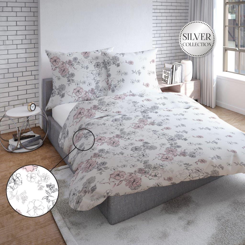 różowe kwiaty pościel z satyny bawełnianej silver collection 160x200 3262B