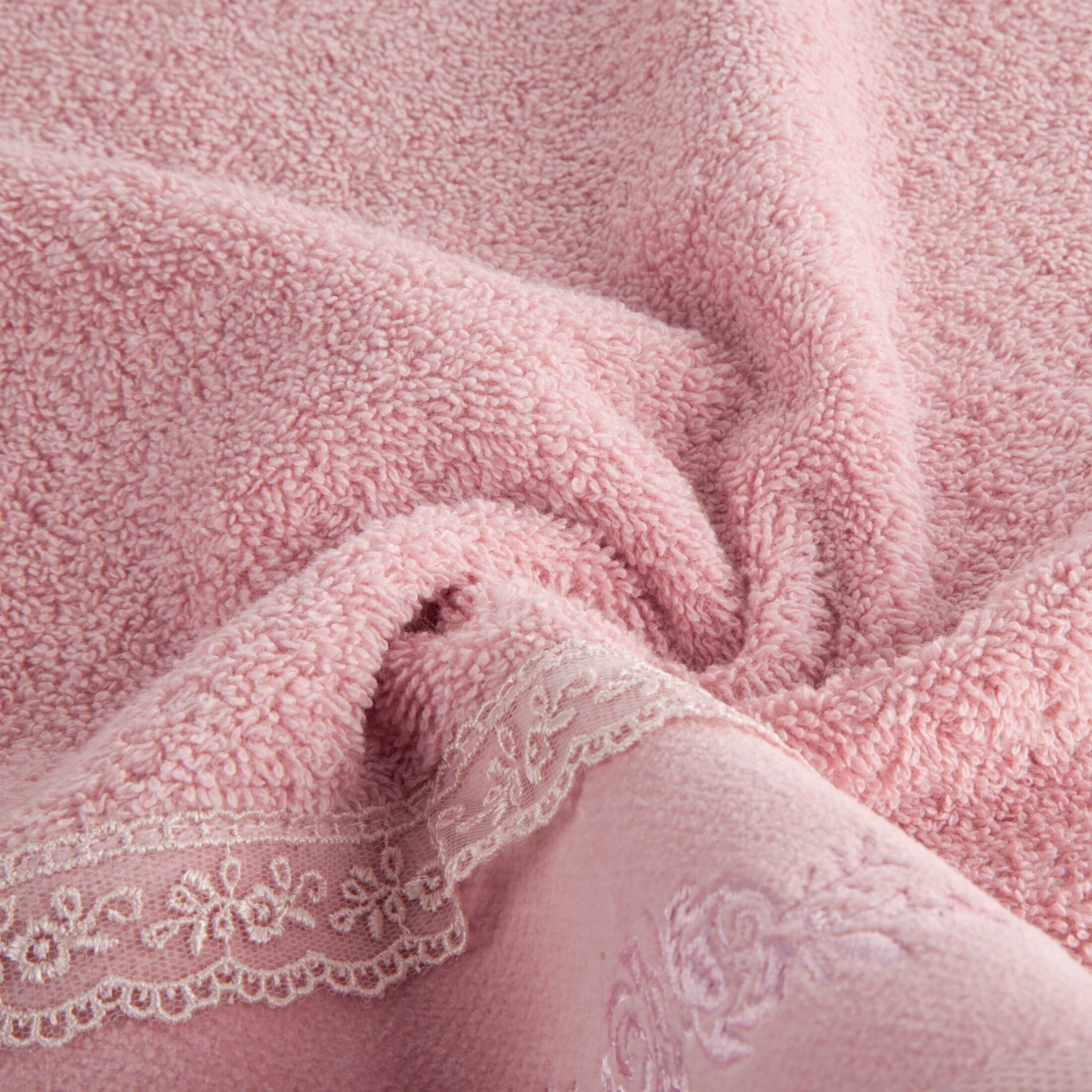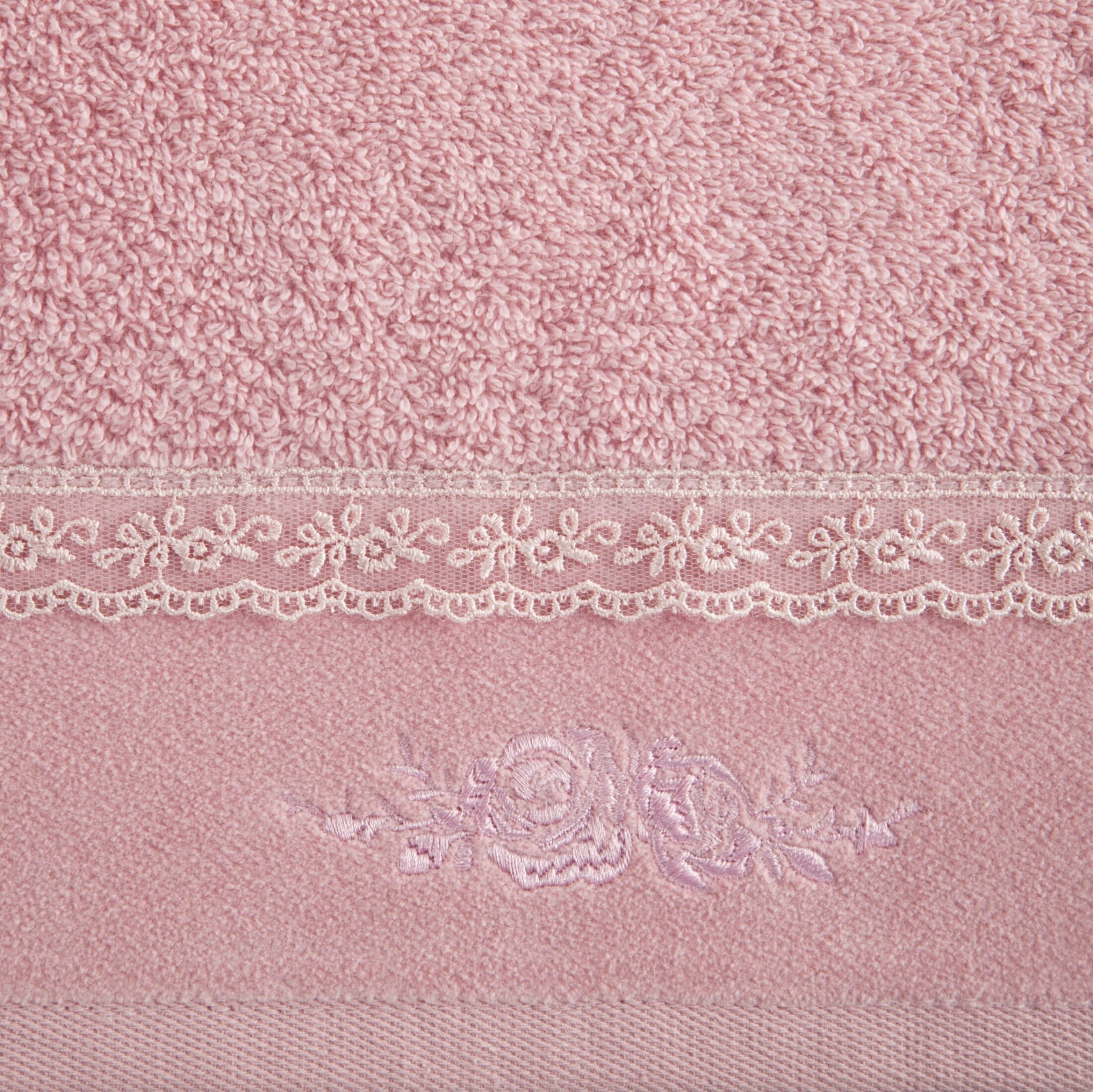 Ręcznik kąpielowy Sisi z piękną ozdobną koronką idealnie sprawdza się w roli ręcznika codziennego jak i dekoracyjnego. Dzianina frotte, z której został wyprodukowany ręcznik posiada Certyfikat Oeko-Tex Standard 100 co oznacza, że została przebadana i nie zawiera substancji szkodliwych dla człowieka oraz substancji powodujących alergie.