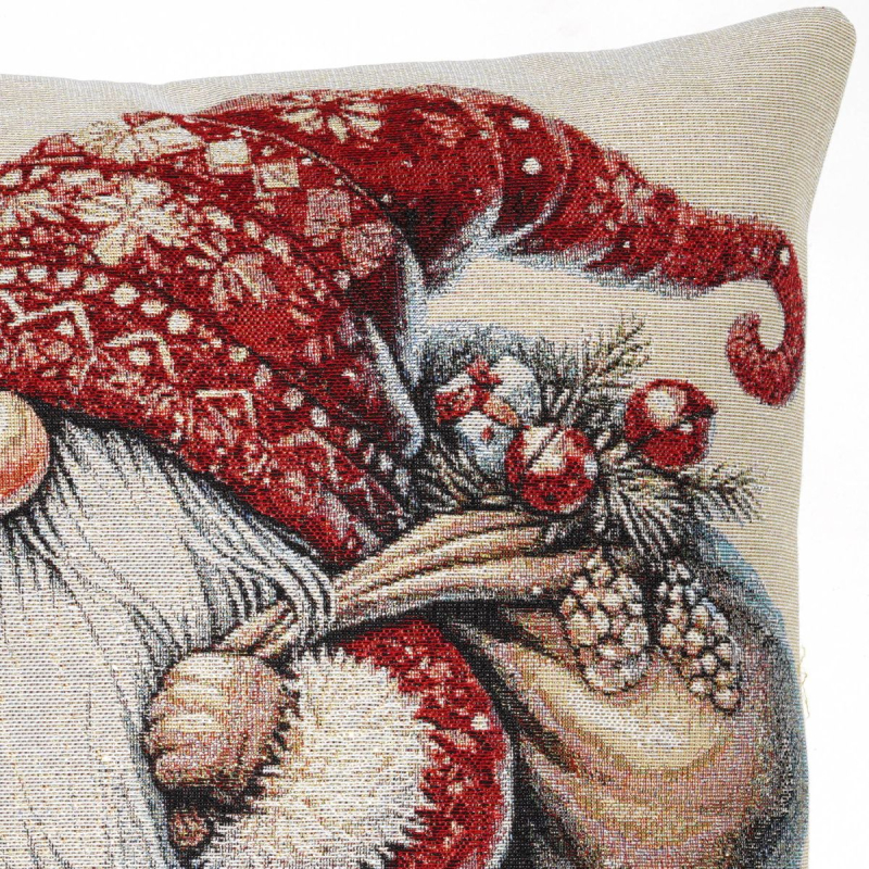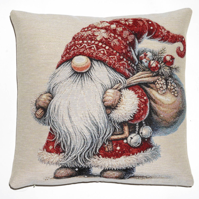 Piękna dekoracyjna poszewka Gobelin Skrzat z workiem 45x45 na poduszkę elegancko ozdobi Twoje wnętrze. Zasuwana na zamek błyskawiczny. Poszewka dwustronna z błyszczącą nicią.