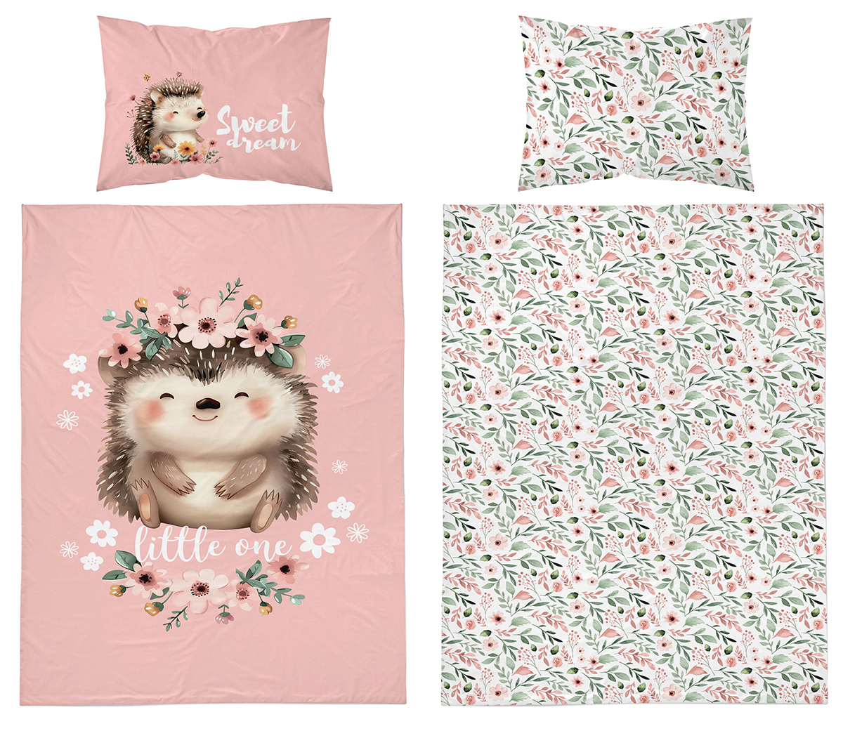 słodki jeżyk dwustronna pościel bawełniana maya moo 100x135 + 40x60 do łóżeczka 5561A