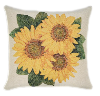 Piękna dekoracyjna poszewka Gobelin Słoneczniki na poduszkę elegancko ozdobi Twoje wnętrze. Zasuwana na zamek błyskawiczny. Poszewka jednostronna - z tyłu jednobarwna tkanina.