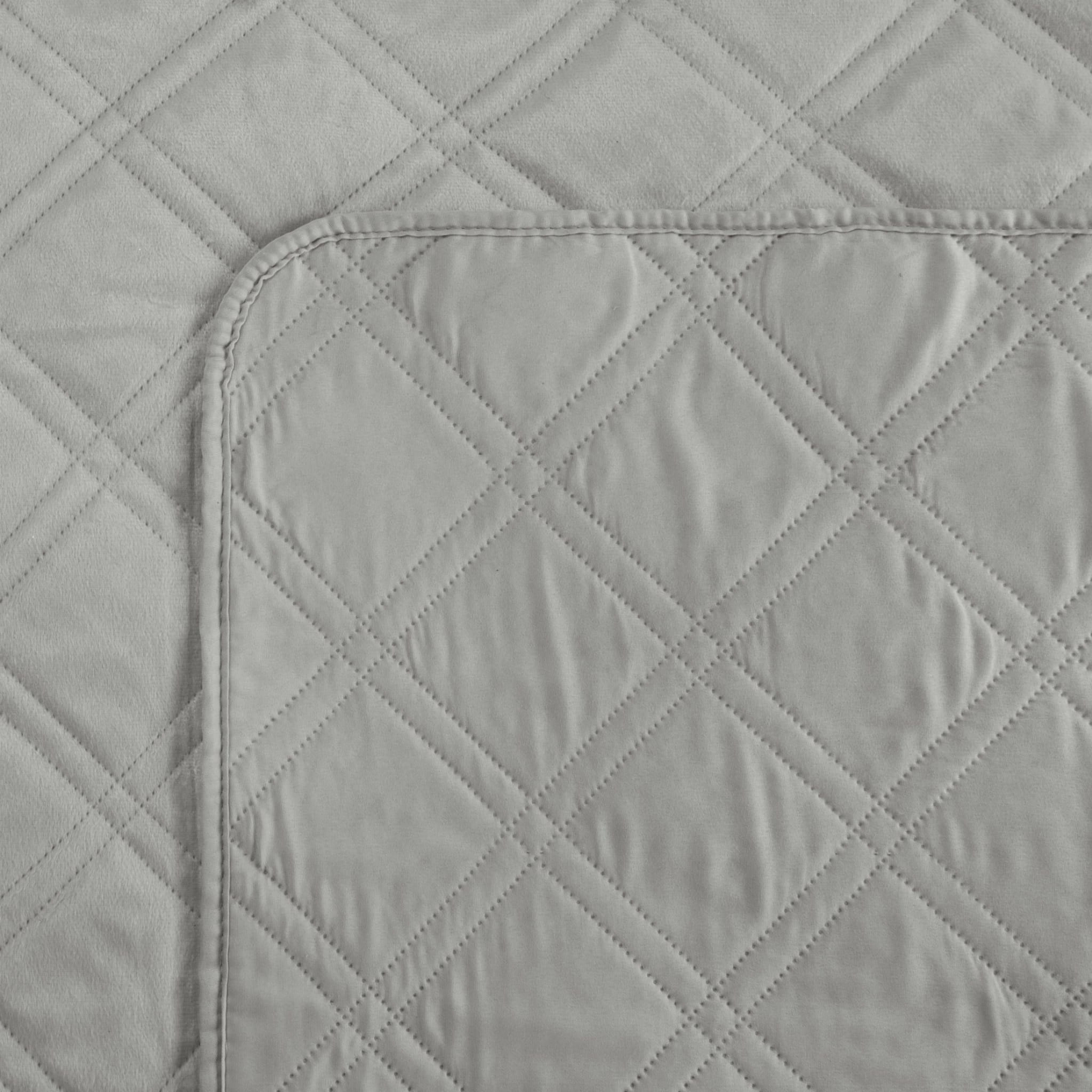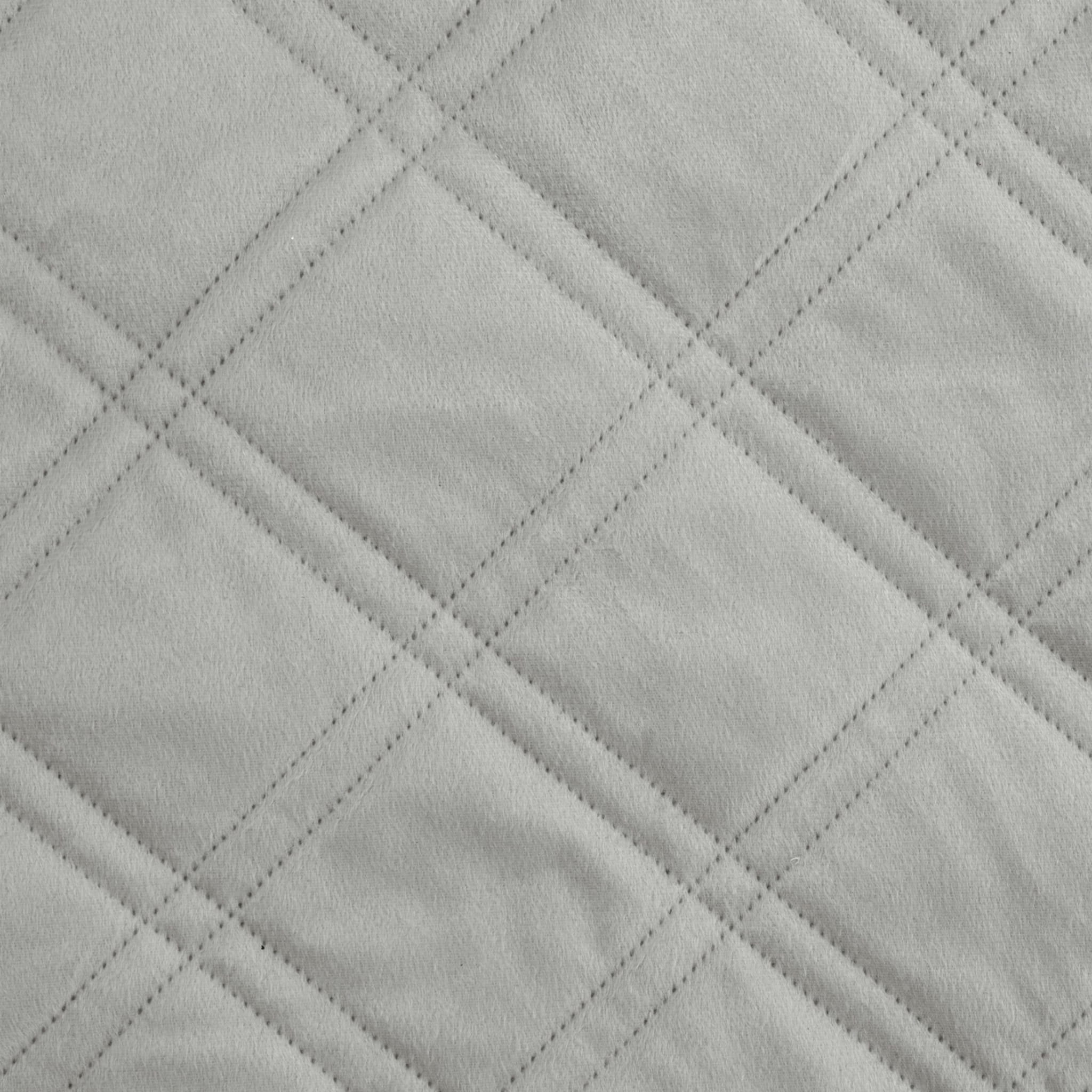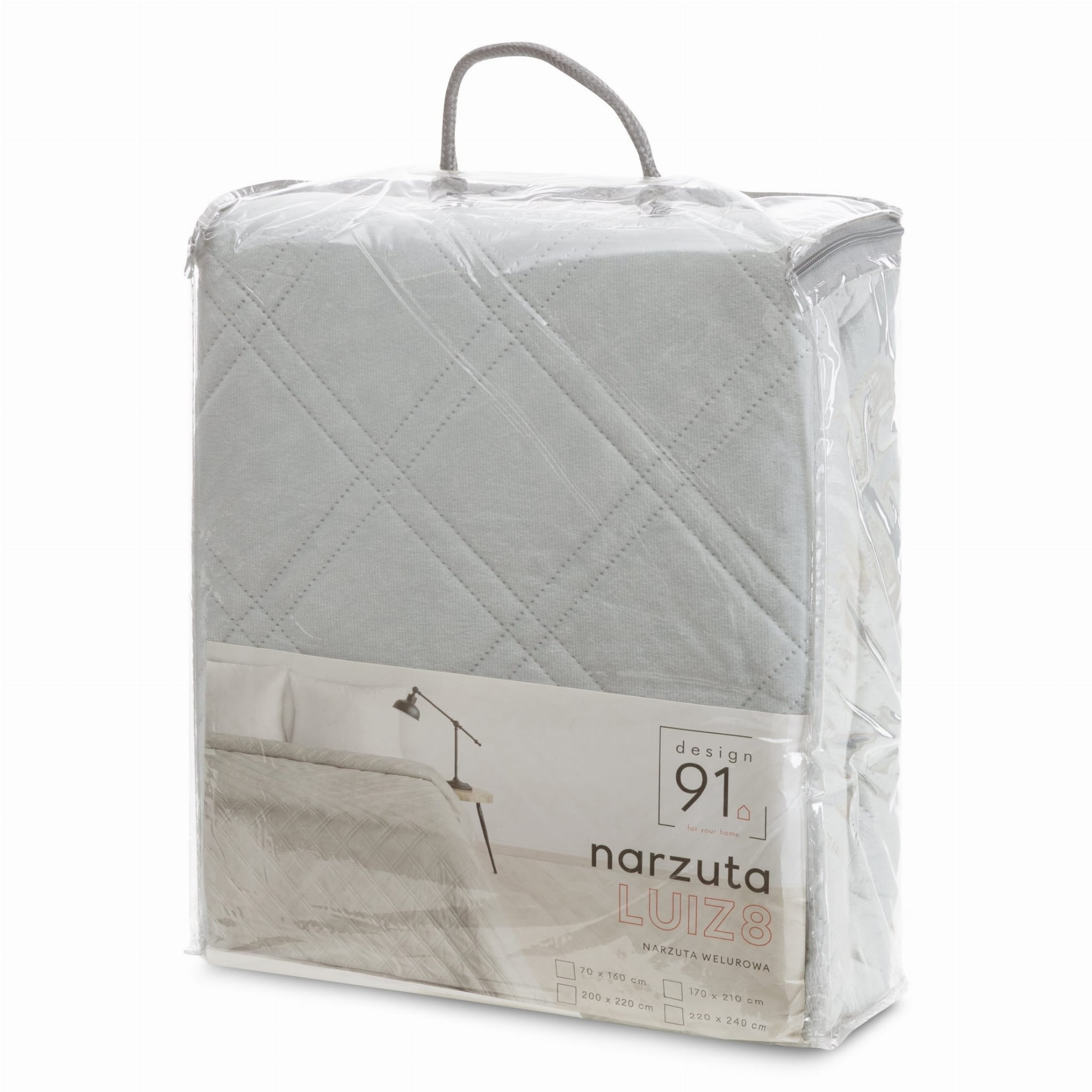 Narzuta na łóżko Luiz 8 170x210 w kolorze srebrnym została wykonana na zlecenie firmy Desing91. Funkcja narzuty to nie tylko sama dekoracja i prezencja ale również ochrona pościeli przed zabrudzeniami. Dwustronna narzuta została starannie wykonana geometrycznym wzorem. Materiał posiada matowy połysk a jej strona wierzchnia została wykonana z bardzo przyjemnego i delikatnego w dotyku velvetu. Druga strona to gładka i matowa mikrofibra imitująca bawełnę. Eleganckie pikowanie w geometryczny wzór zostało wykonane metodą hot press 3D czyli bez użycia nici i igieł. Całość jest zatem miła i przyjemna w dotyku oraz nie posiada dodatkowych przeszyć. Pikowanie za pomocą termo-zgrzewania posiada tą zaletę, że powstaje trwały materiał o dużej wytrzymałości. Cała narzuta jest lekka dzięki temu łatwo mieści się do pralki a codziennie ścielenie łóżka jest szybkie i przyjemne.