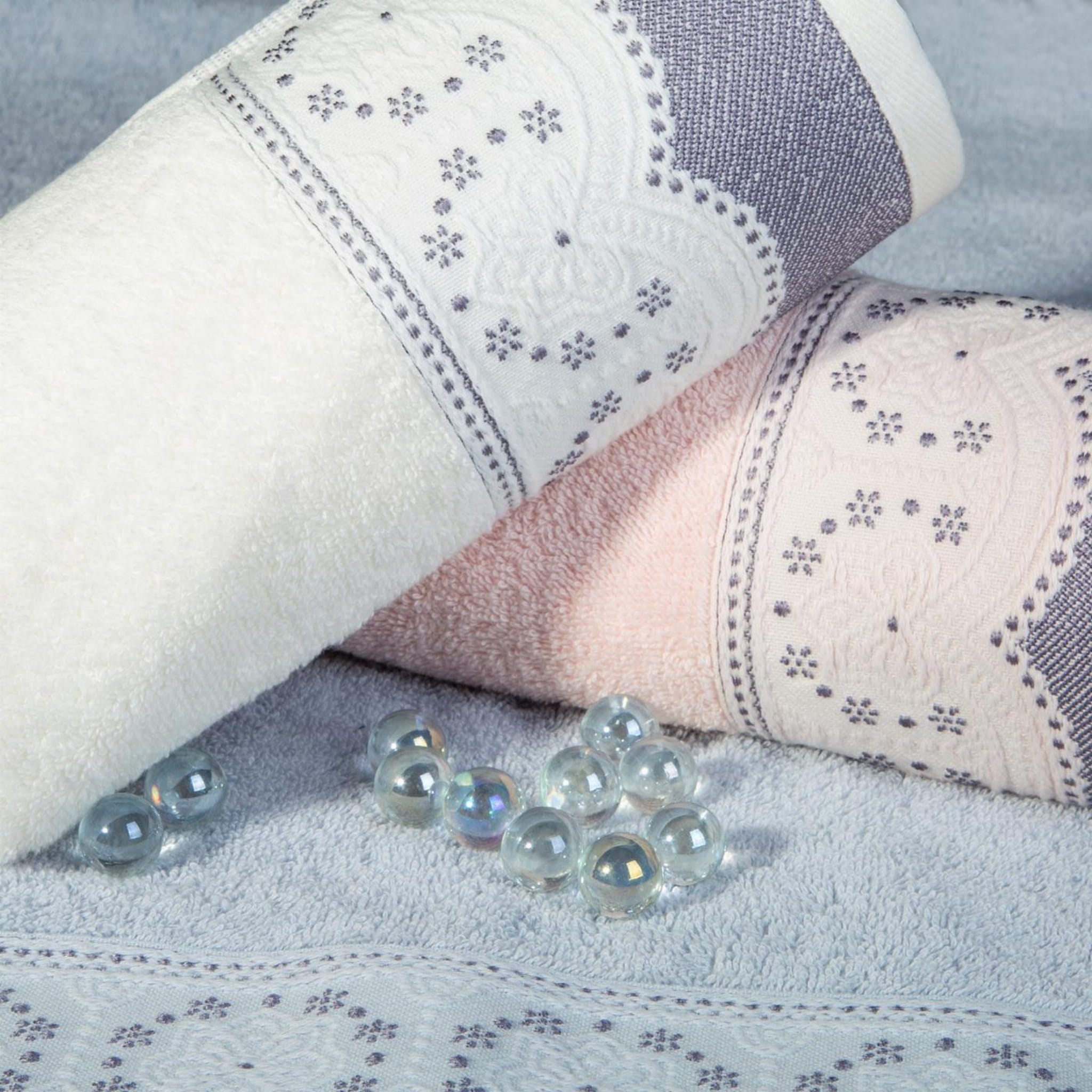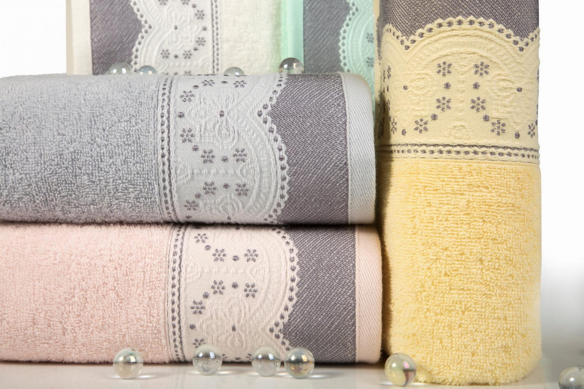 Ręcznik bawełniany Tina w kolorze srebrnym z ozdobną bordiurą został wyprodukowany przez znaną i cenioną markę Eurofirany. Został wykonany z wysokiej jakości przędzy frotte, składającej się w 100% bawełny, która zapewnia wysokie właściwości higroskopijne czyli zdolność pochłaniania wilgoci. Charakteryzuje się optymalną do codziennego użytku gramaturą 450 g/m², dzięki której szybko schnie. Dodatkowo ręcznik cechuje się przyjemnym i miękkim chwytem. Świetnie odnajdzie się w klasycznych jak i nowoczesnych wnętrzach tym bardziej, że ręcznik występuje w bardzo bogatej kolorystyce. Z pewnością zadowolą klientów szukających wysokiej jakości w połączeniu z atrakcyjną ceną i eleganckim designem.