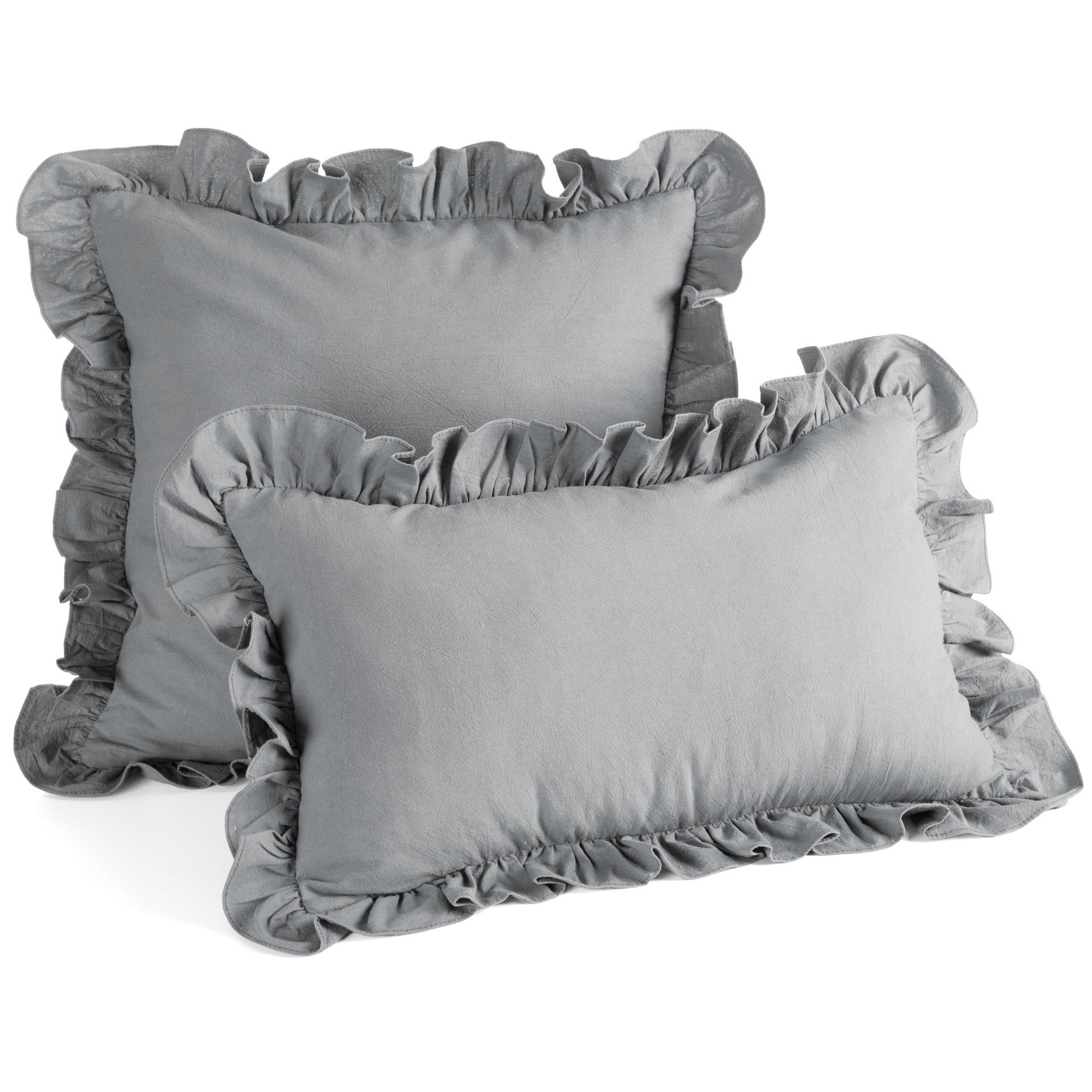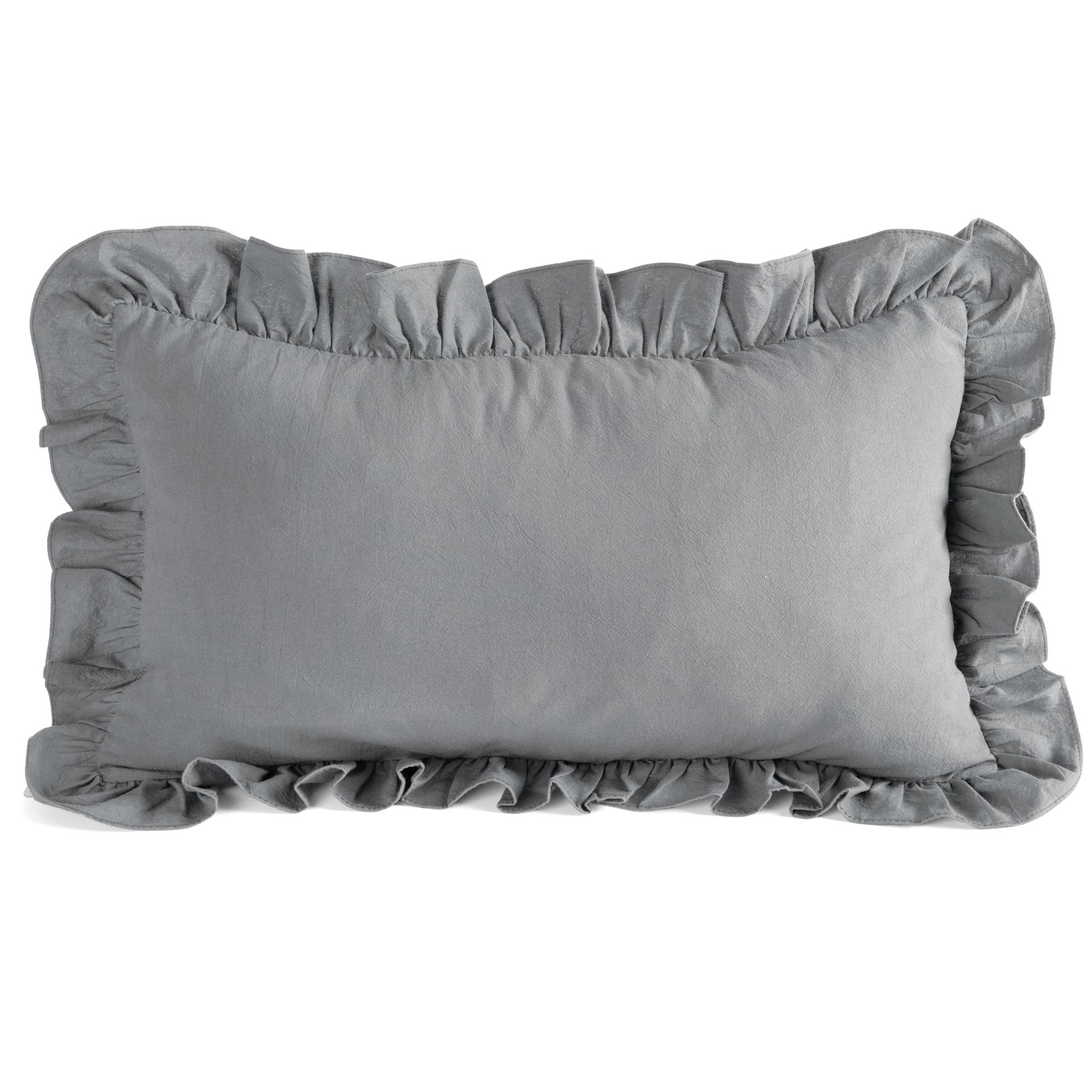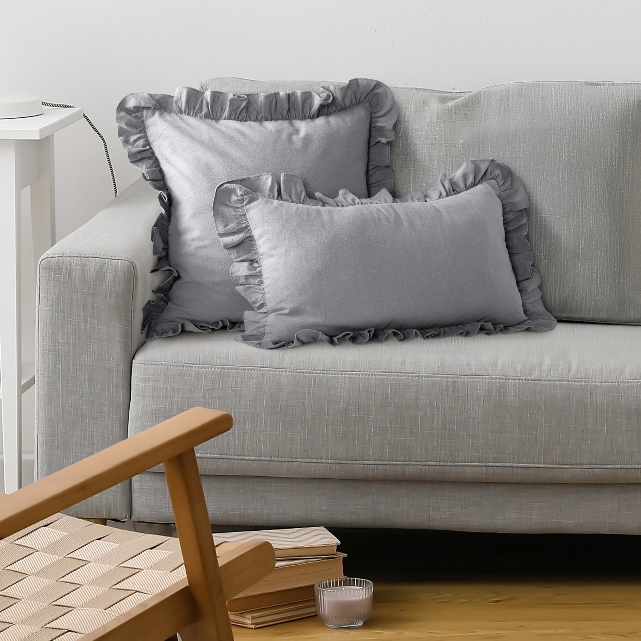 Piękna poszewka bawełniana z falbanką 30x50 w kolorze stalowym na poduszkę to doskonały wybór dla osób, które cenią naturalne tkaniny i subtelne dodatki we wnętrzu