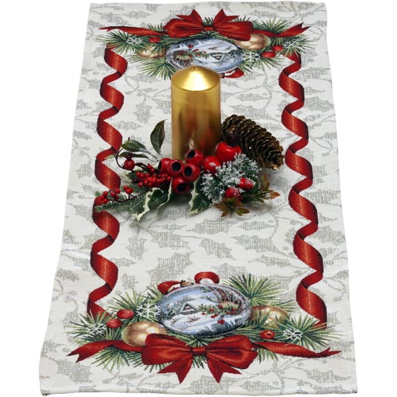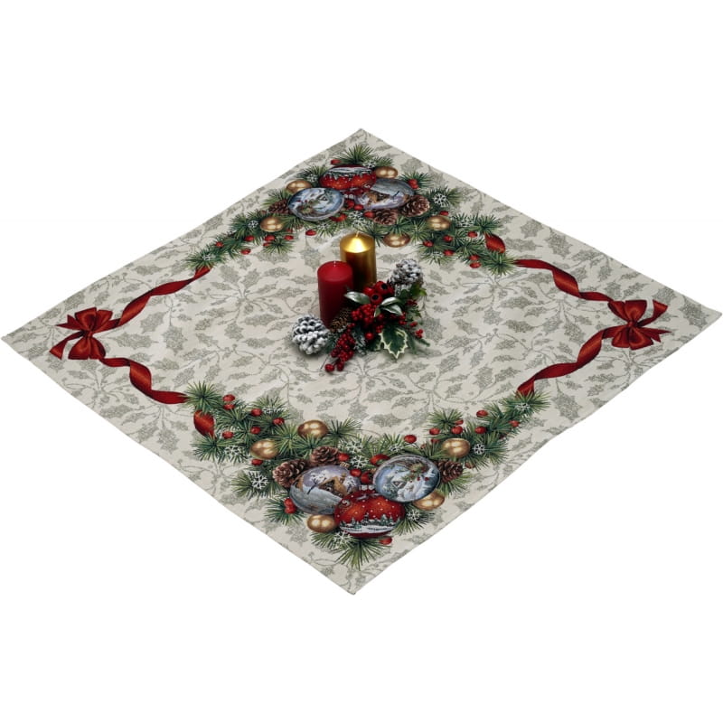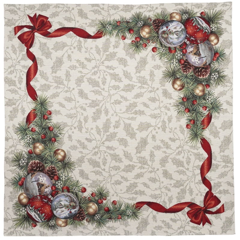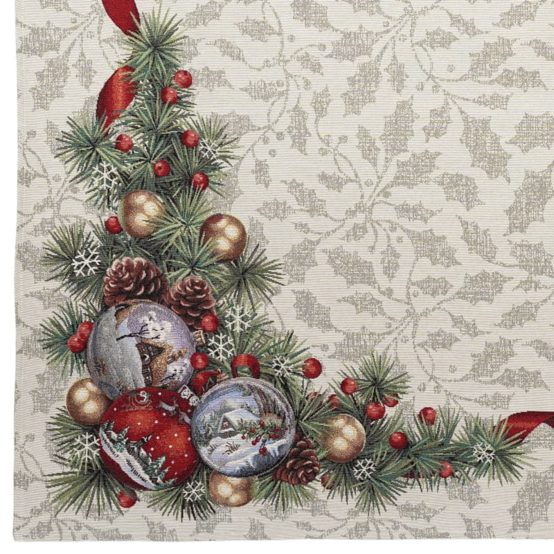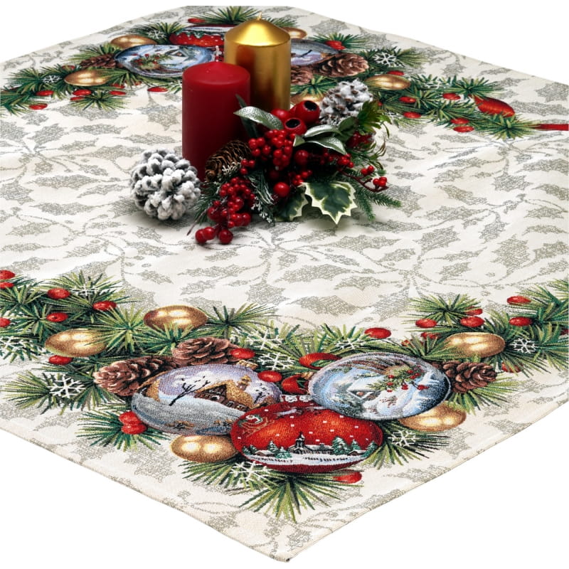 Ekskluzywny obrus Gobelin Stroik Świąteczny jest dopełnieniem i ozdobą każdego zastawionego stołu. Wykonany z precyzją z plamoodpornej tkaniny świetnie wygląda i eksponuje każdą elegancką zastawę z efektownymi zdobieniami. Będzie się cudownie prezentował w tradycyjnych wnętrzach, jak i w nowocześnie urządzonych pomieszczeniach. Produkt wyprodukowany w Polsce.