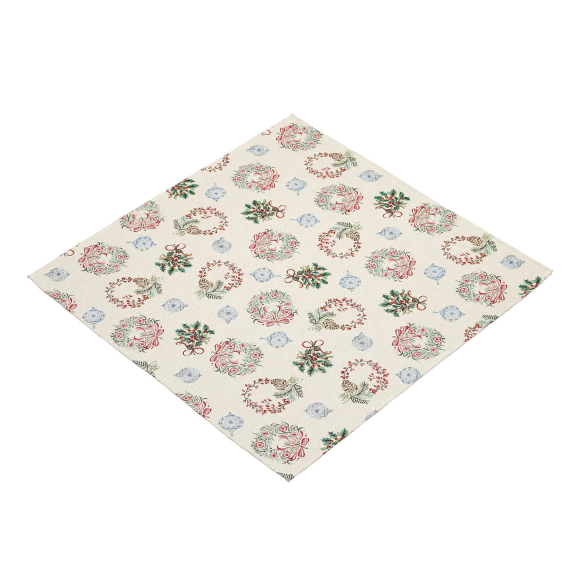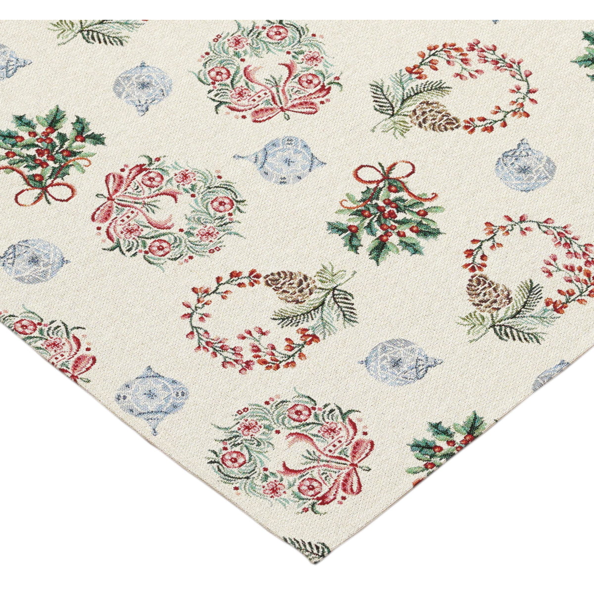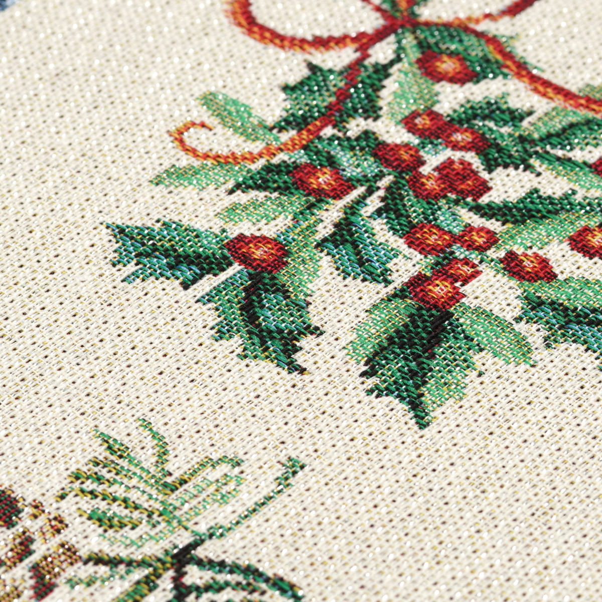 Ekskluzywny obrus Gobelin Świąteczne Wianki z połyskującą srebrną nitką jest dopełnieniem i ozdobą każdego zastawionego stołu. Wykonany z precyzją z plamoodpornej tkaniny świetnie wygląda i eksponuje każdą elegancką zastawę z efektownymi zdobieniami. Będzie się cudownie prezentował w tradycyjnych wnętrzach, jak i w nowocześnie urządzonych pomieszczeniach. Produkt wyprodukowany w Polsce.