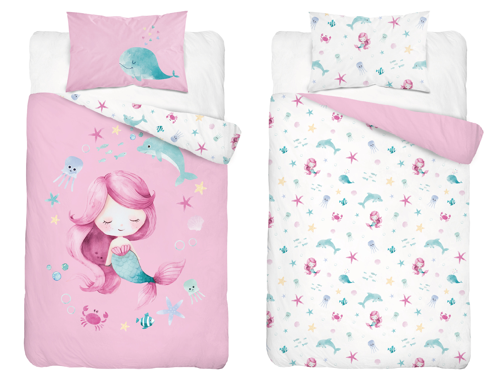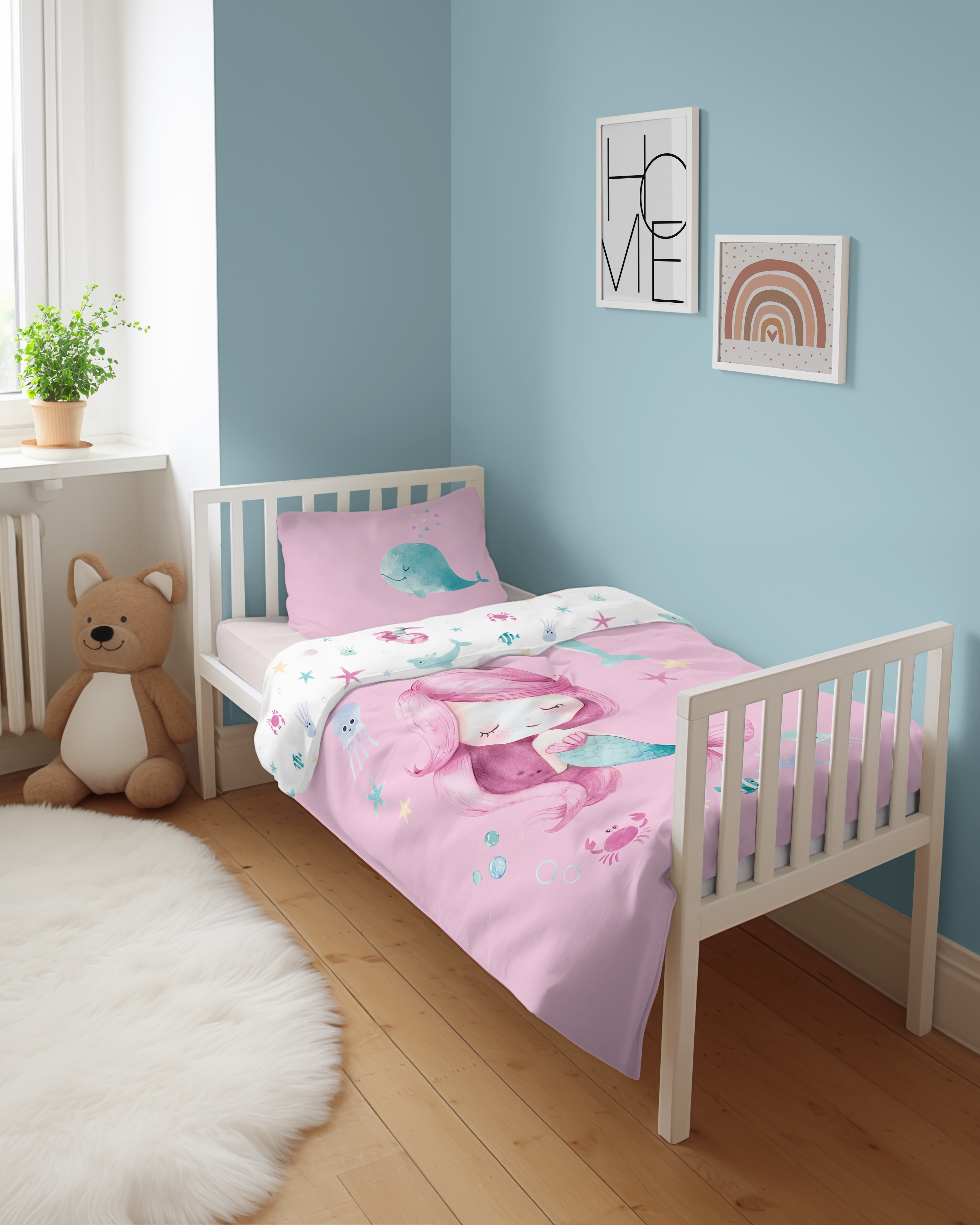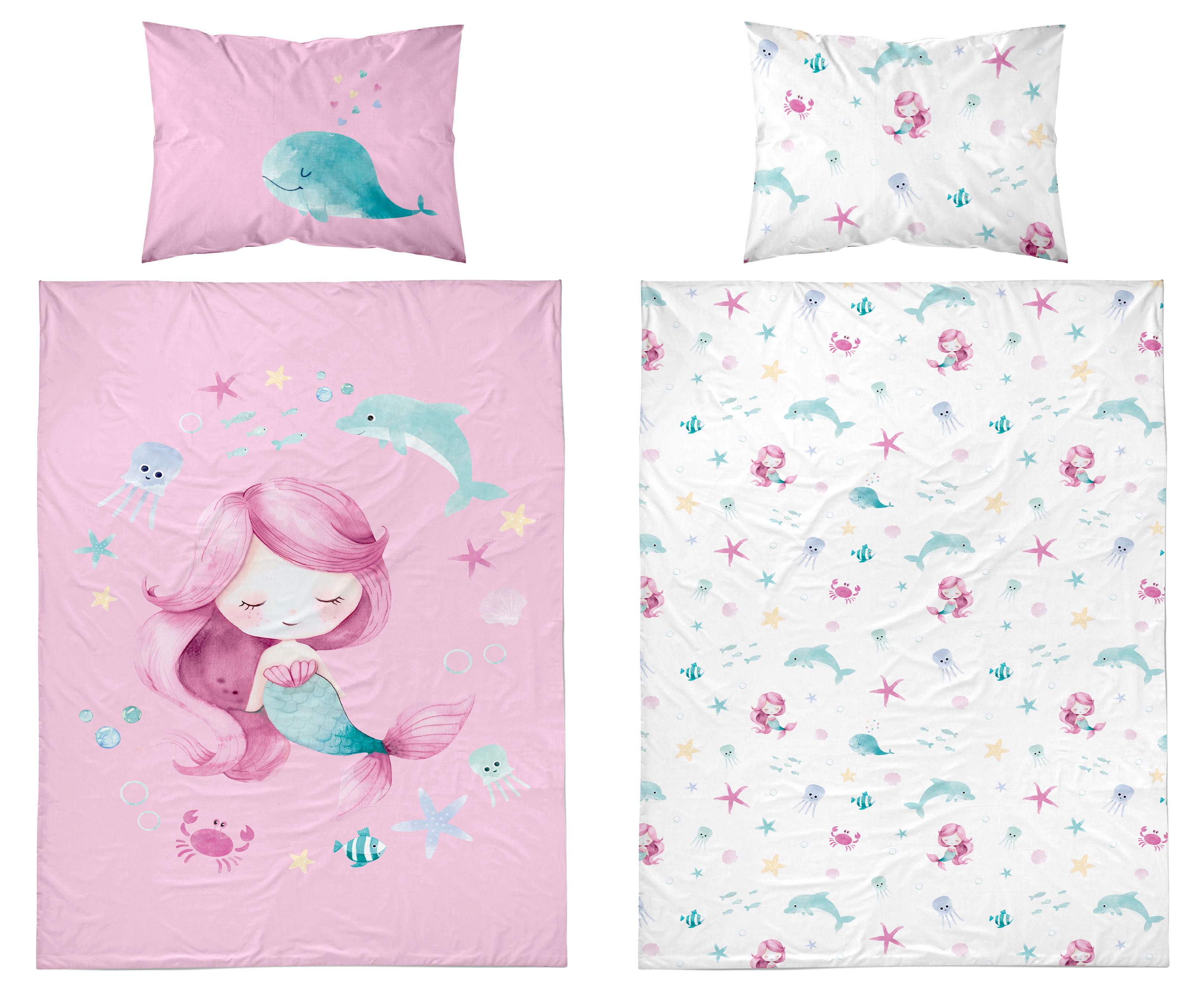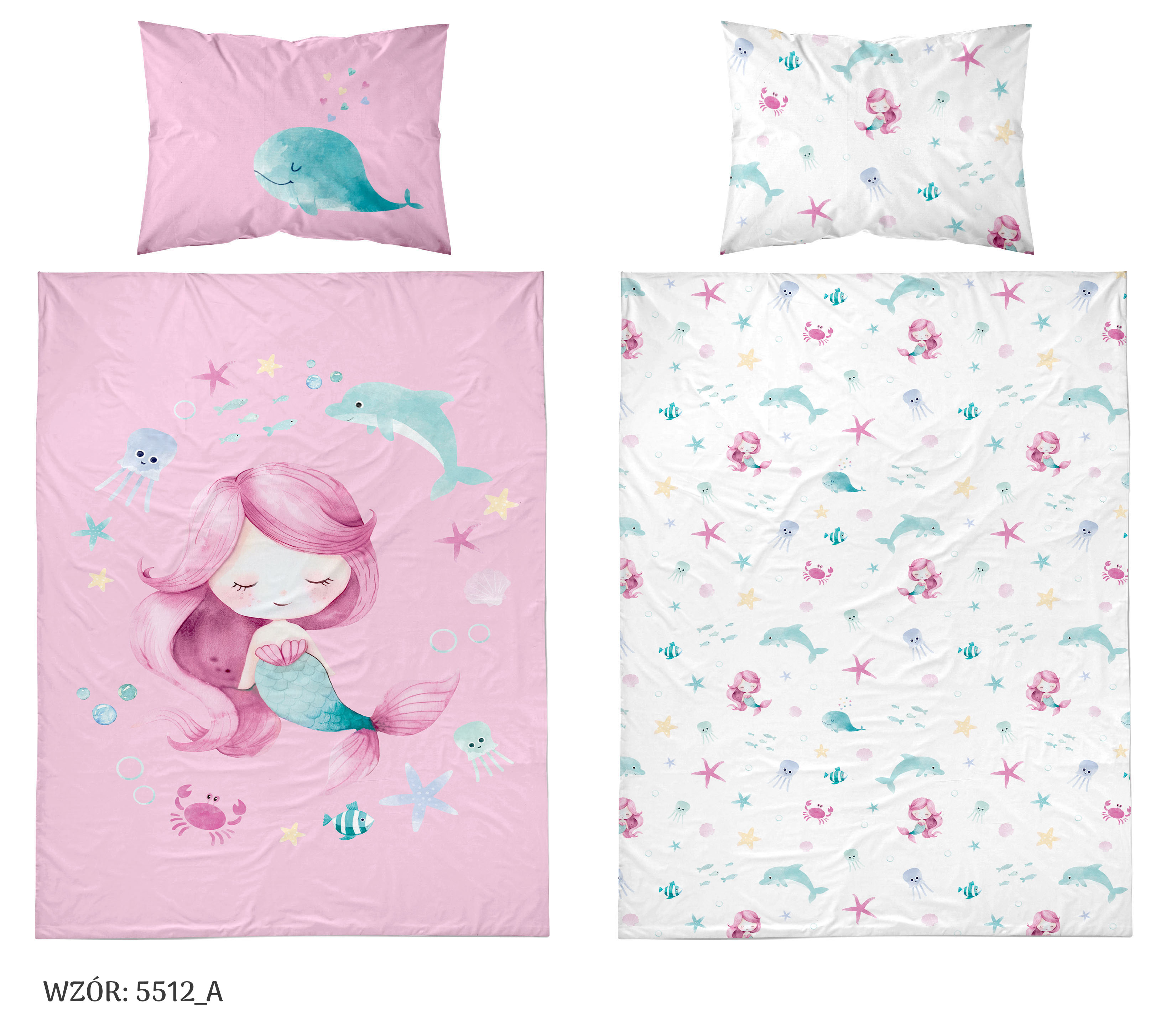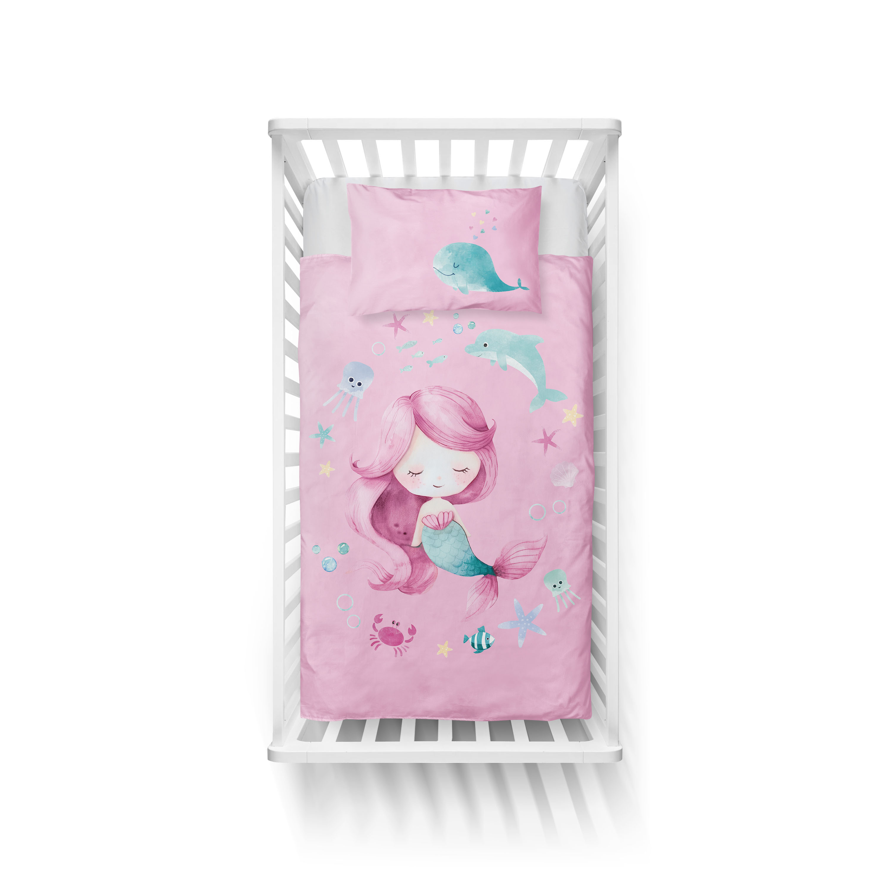 syrenka Marzenka dwustronna pościel bawełniana maya moo 100x135 + 40x60 do łóżeczka 5512A