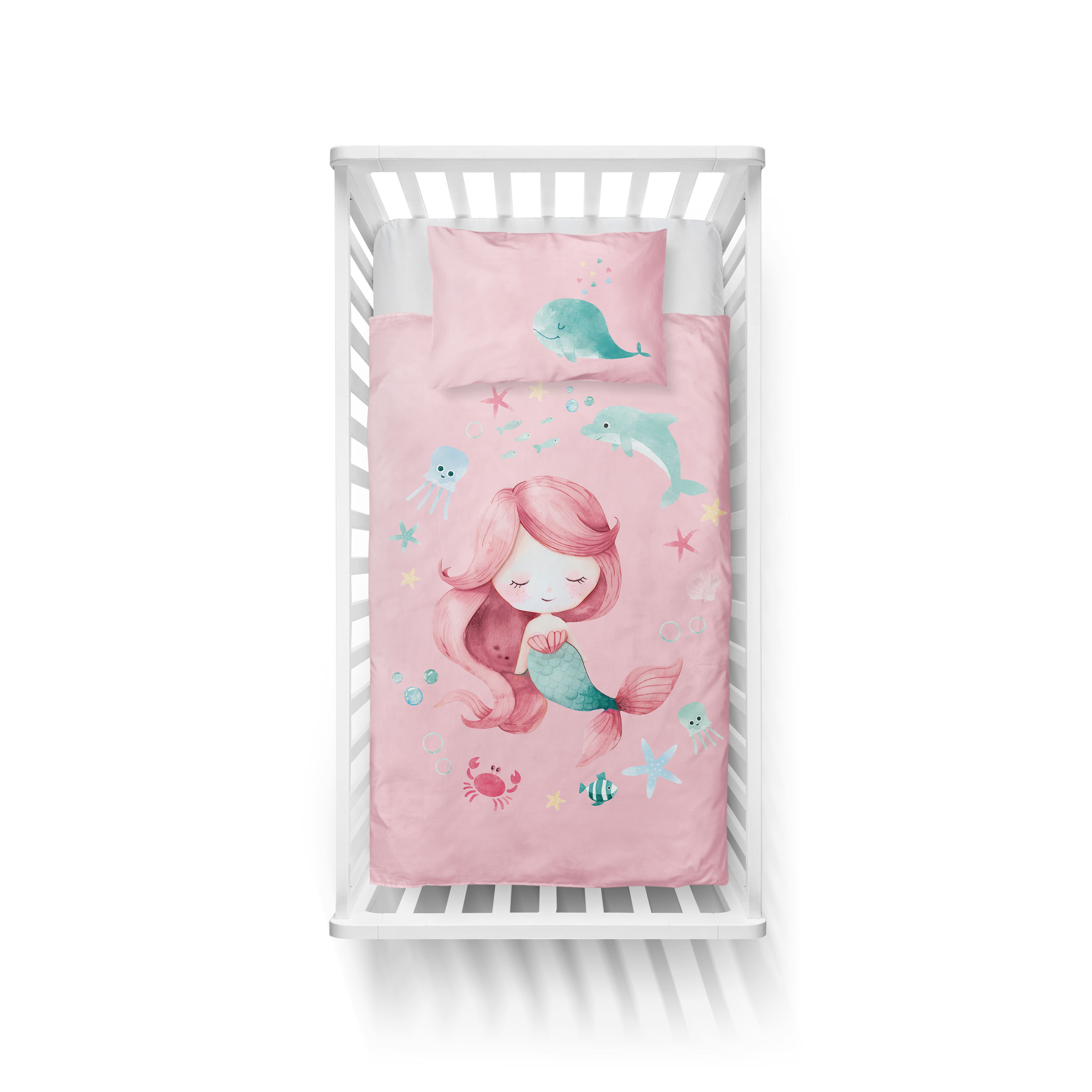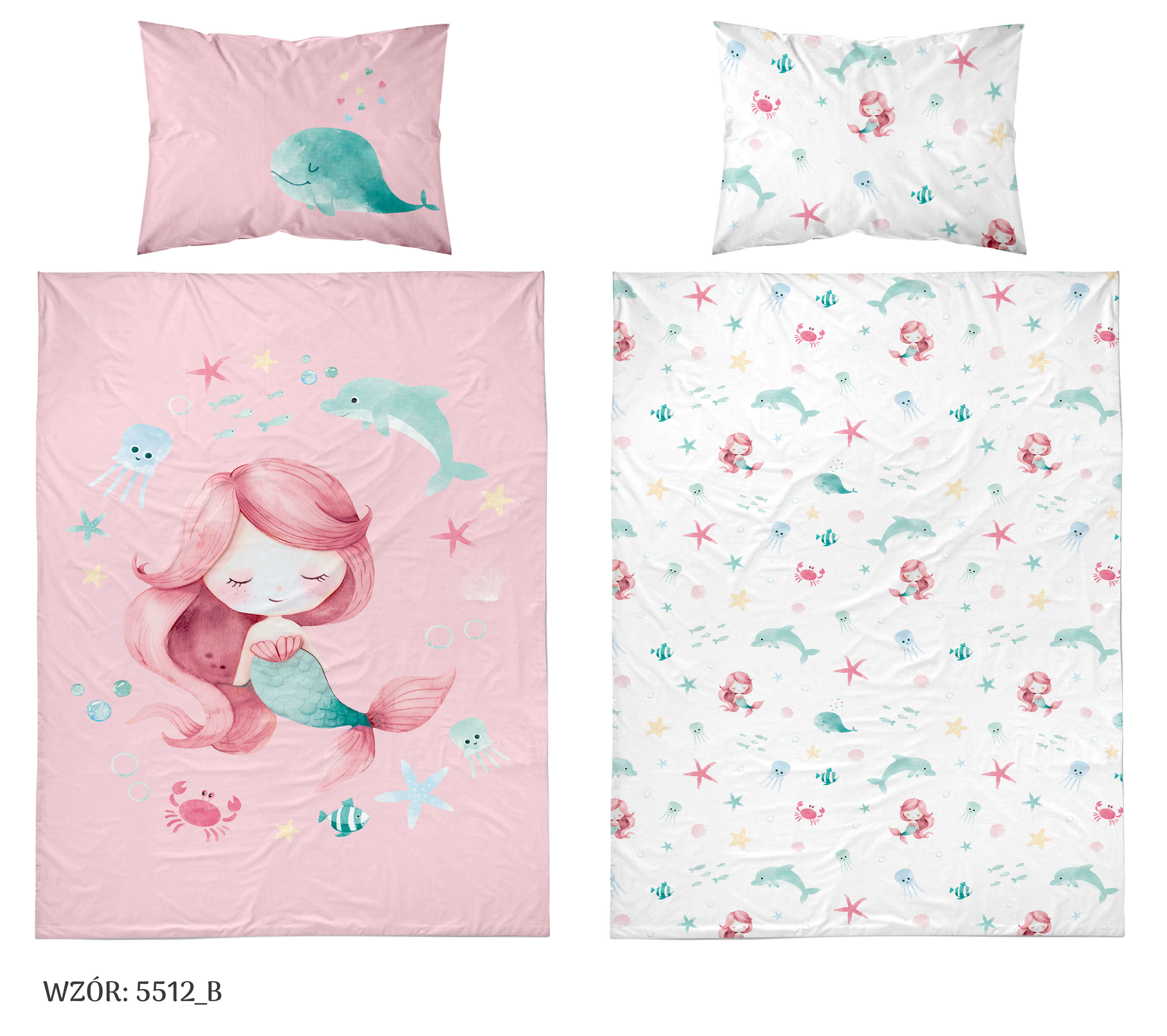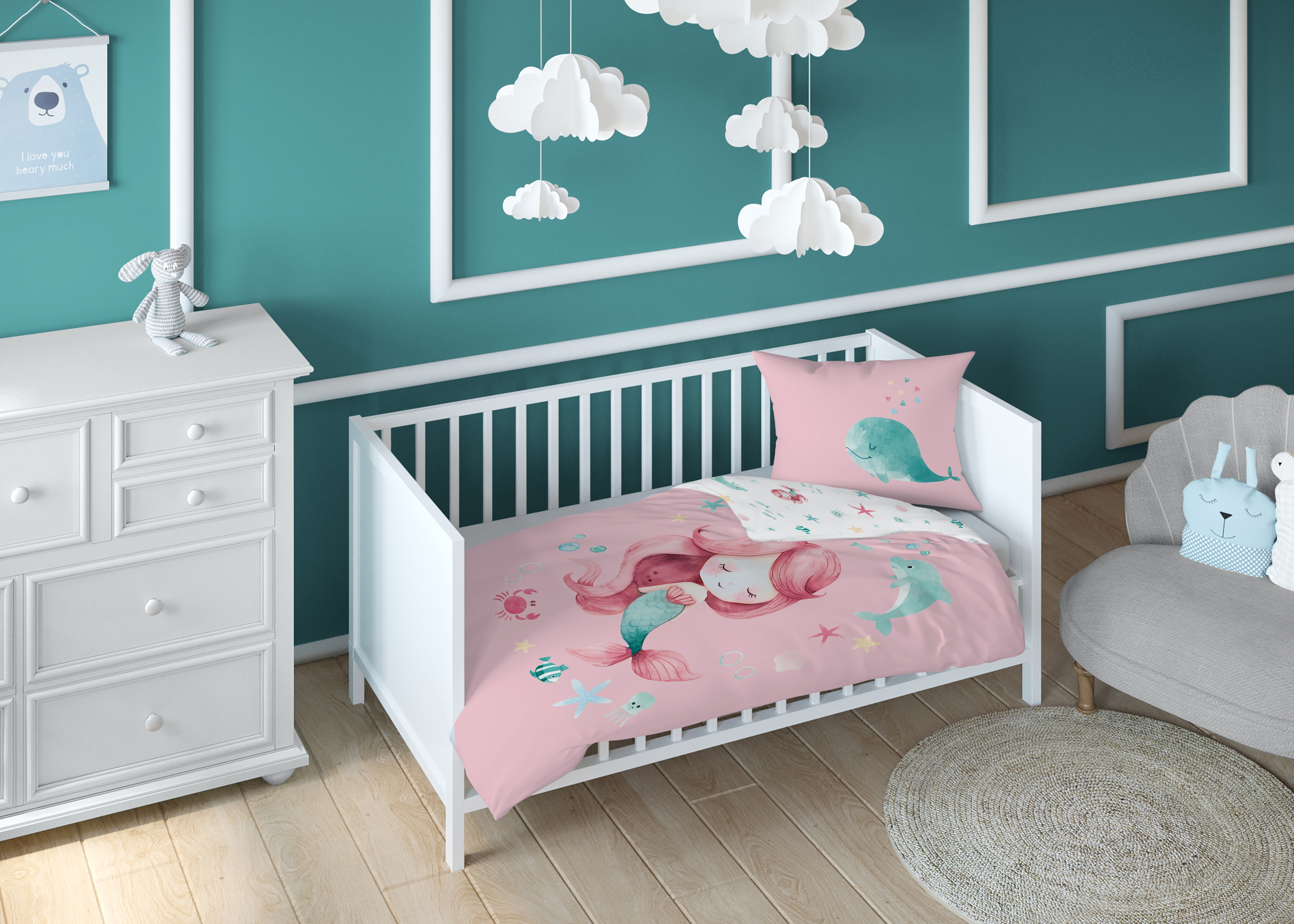 syrenka Marzenka dwustronna pościel bawełniana maya moo 100x135 + 40x60 do łóżeczka 5512B