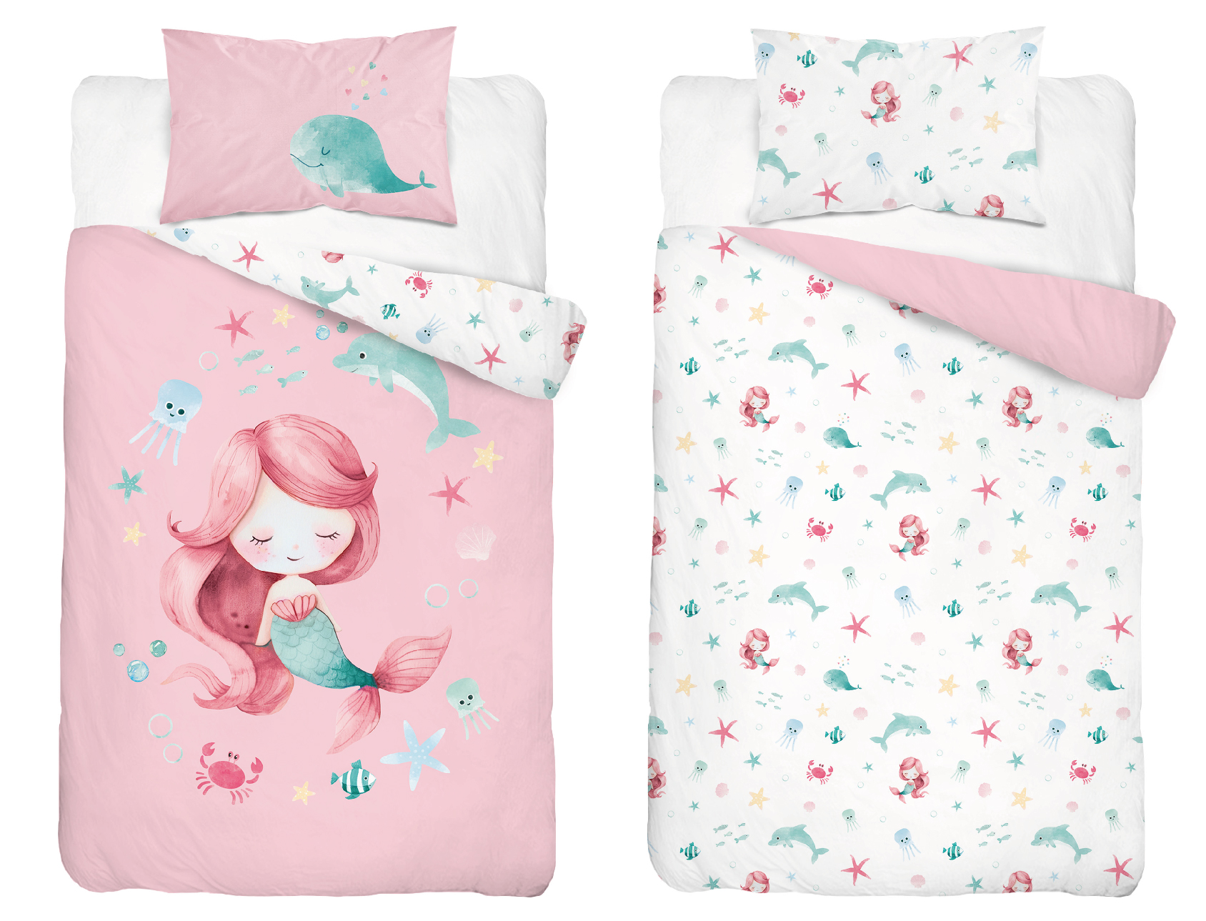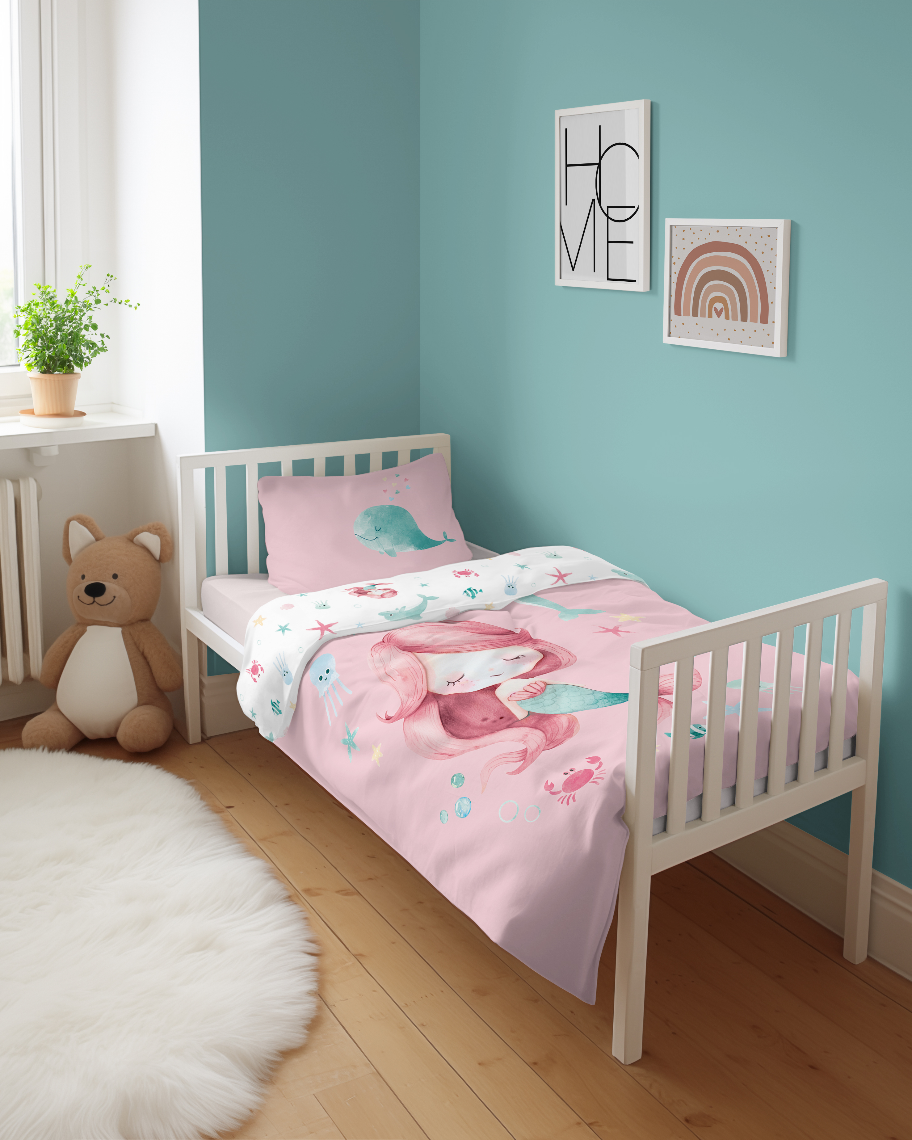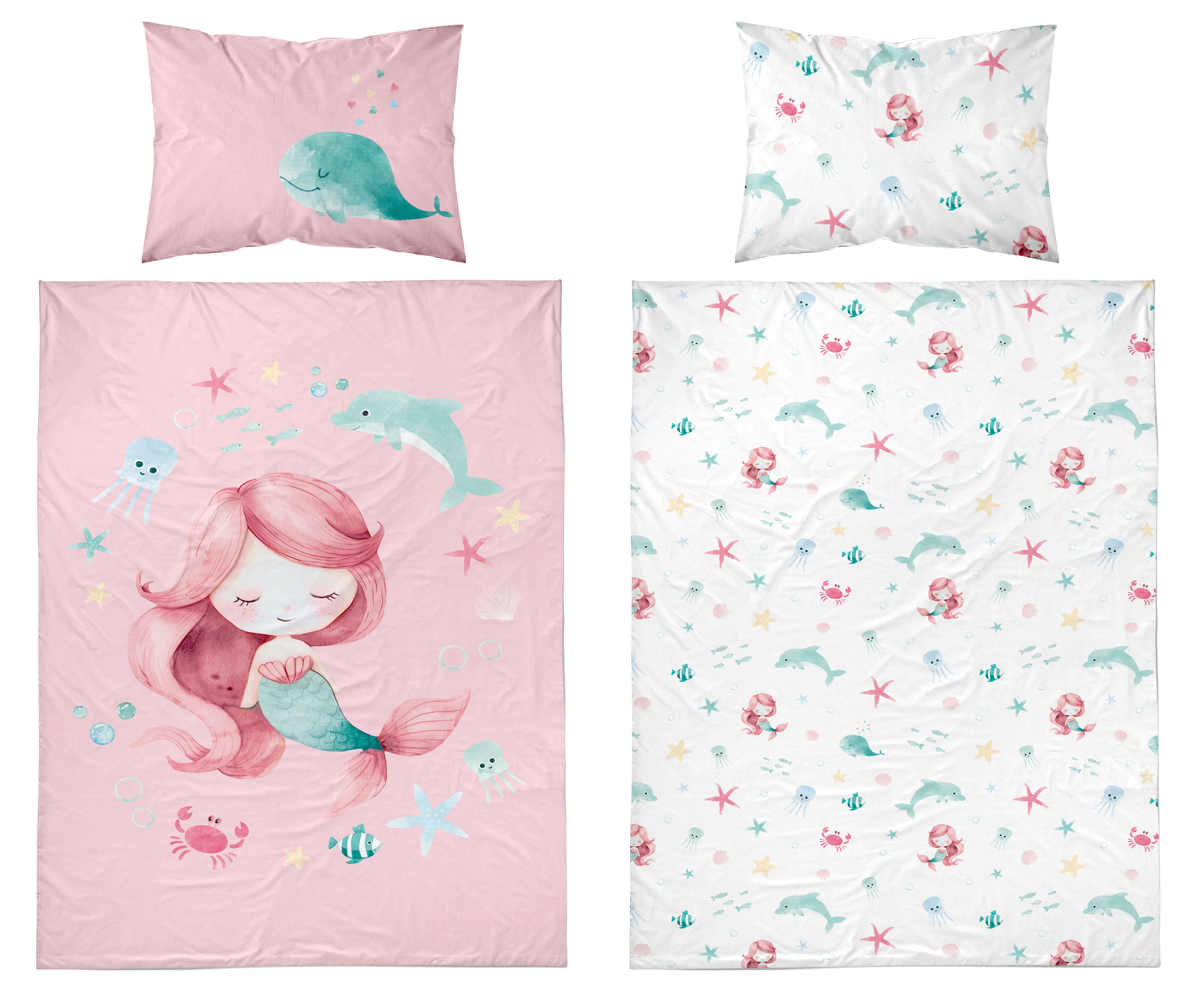 syrenka Marzenka dwustronna pościel bawełniana maya moo 100x135 + 40x60 do łóżeczka 5512B