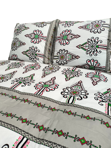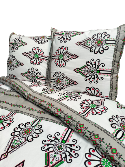 Tkanina na pościel z bawełny z góralskim wzorem w parzenice została wyprodukowana w Polsce i posiada gramaturę 130 g/m². Pościel została starannie uszyta w naszej szwalni przez co gwarantuje wysoką jakość wykończenia. Tkanina posiada Certyfikat Oeko-Tex Standard 100 co oznacza, że została przebadana i nie zawiera substancji szkodliwych dla człowieka oraz substancji powodujących alergie.