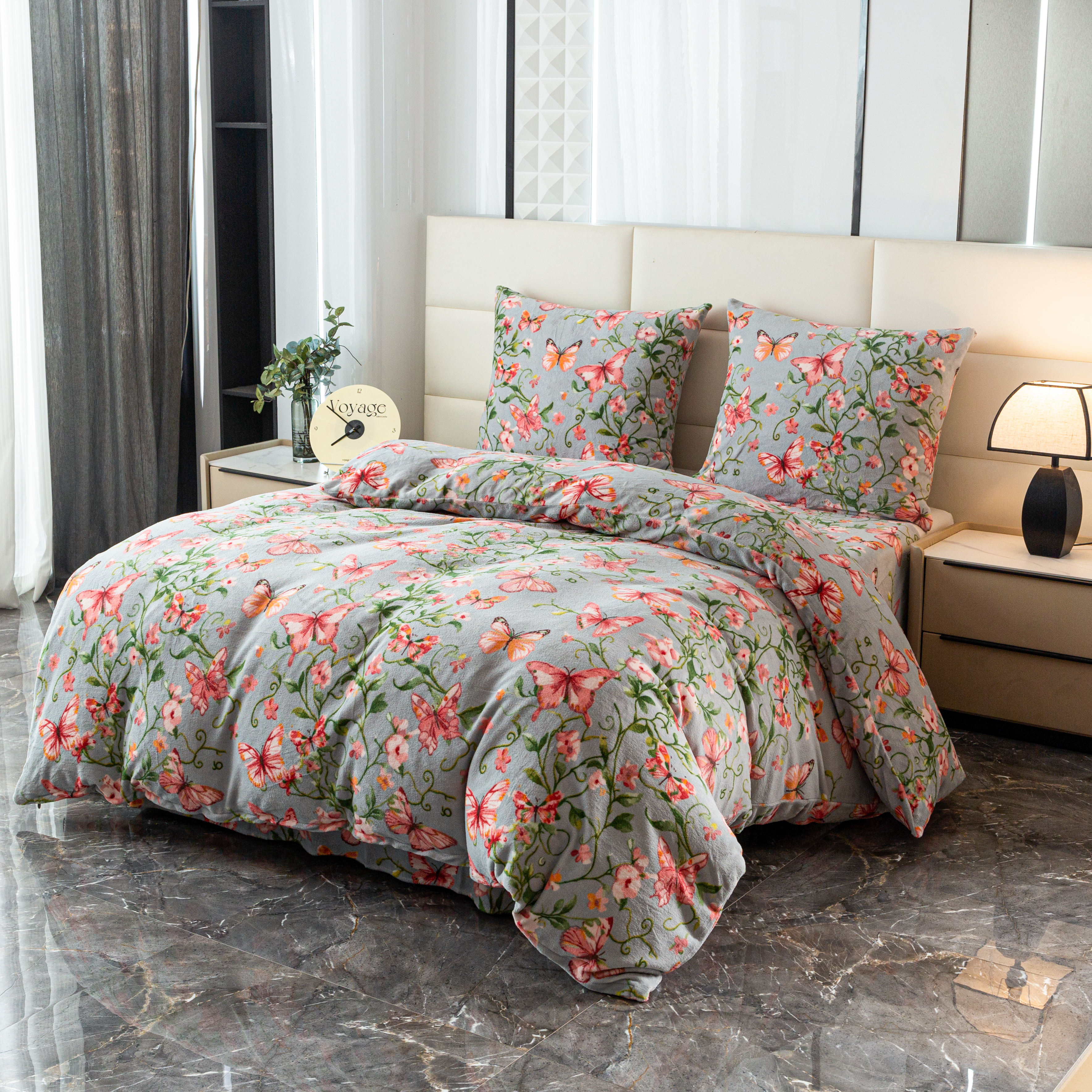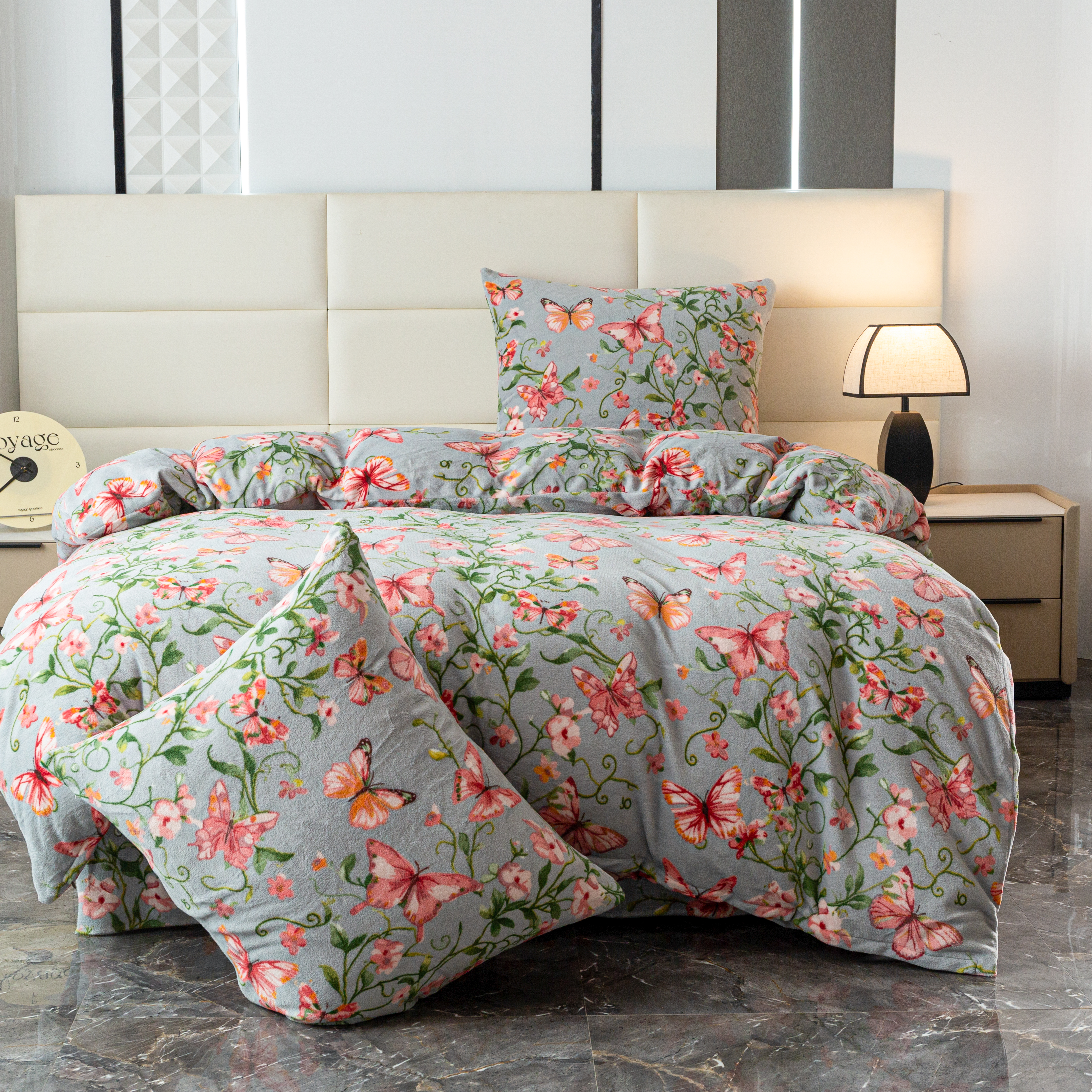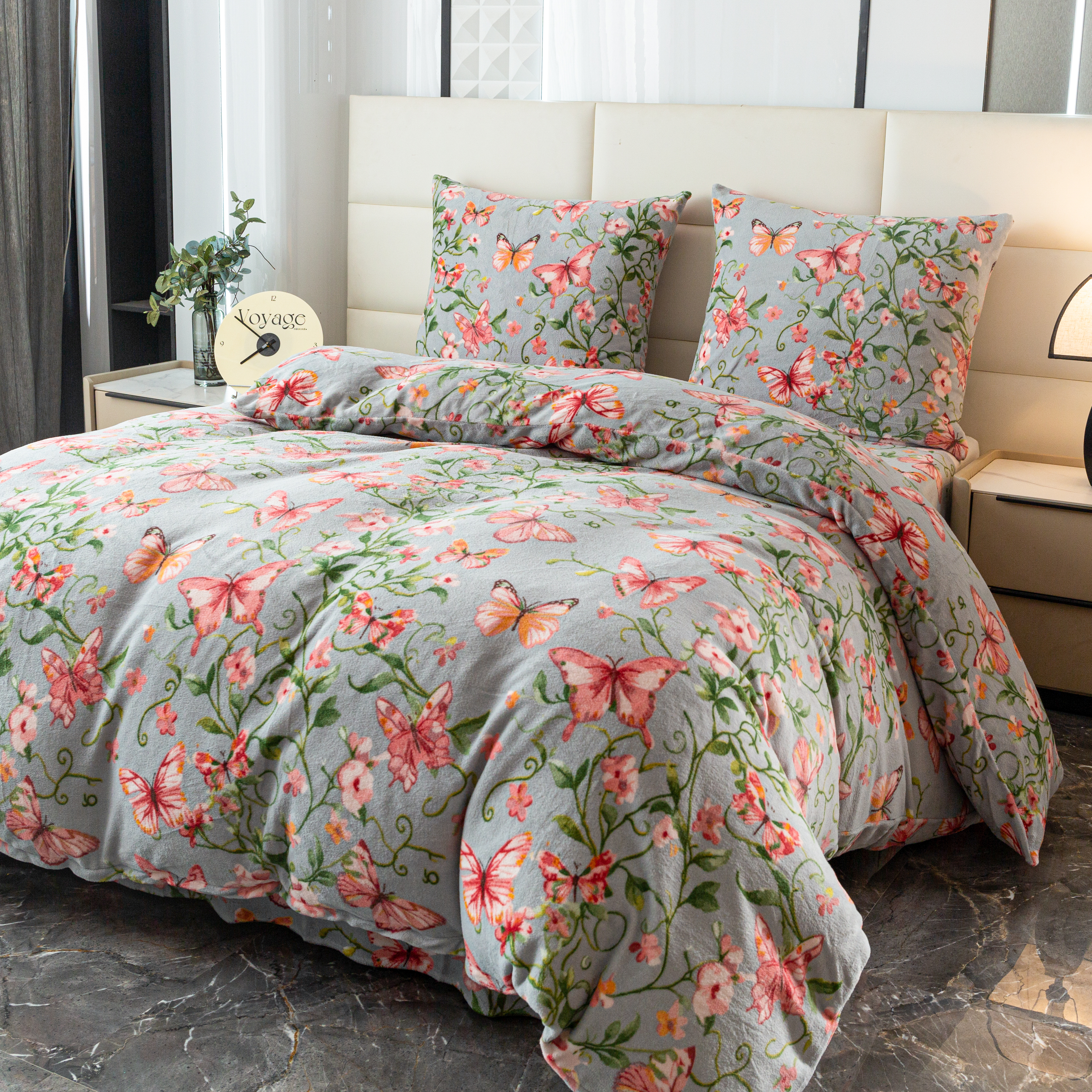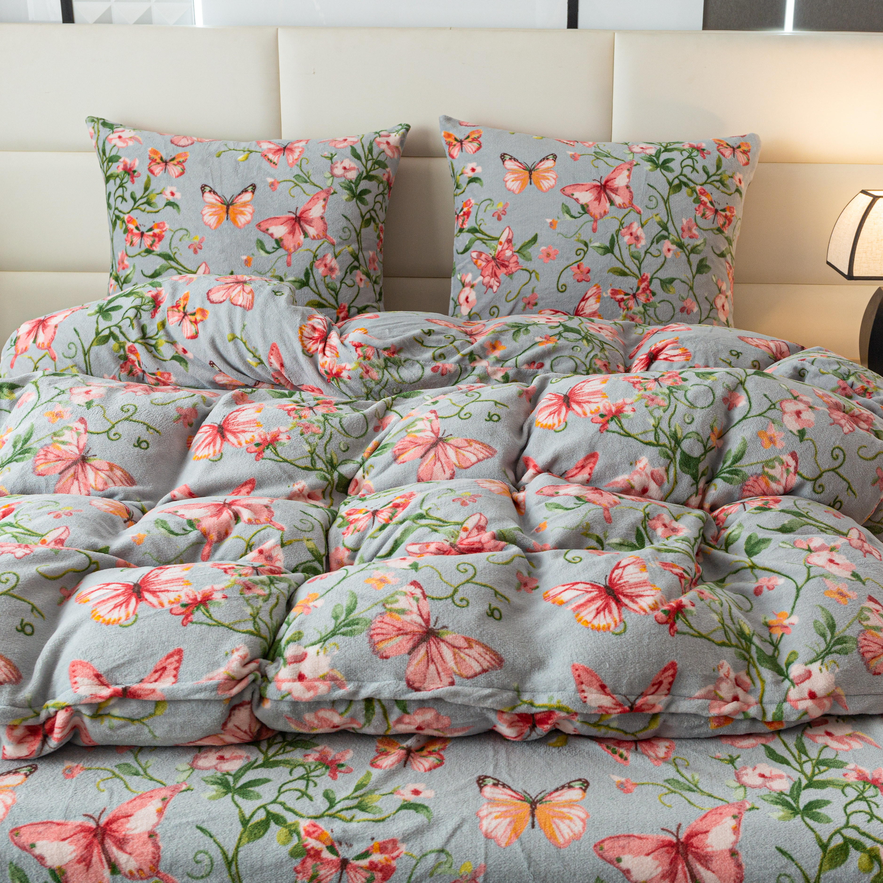 szara pościel z mikrofibry miś plusz motyle SHY-3140 COTTON WORLD