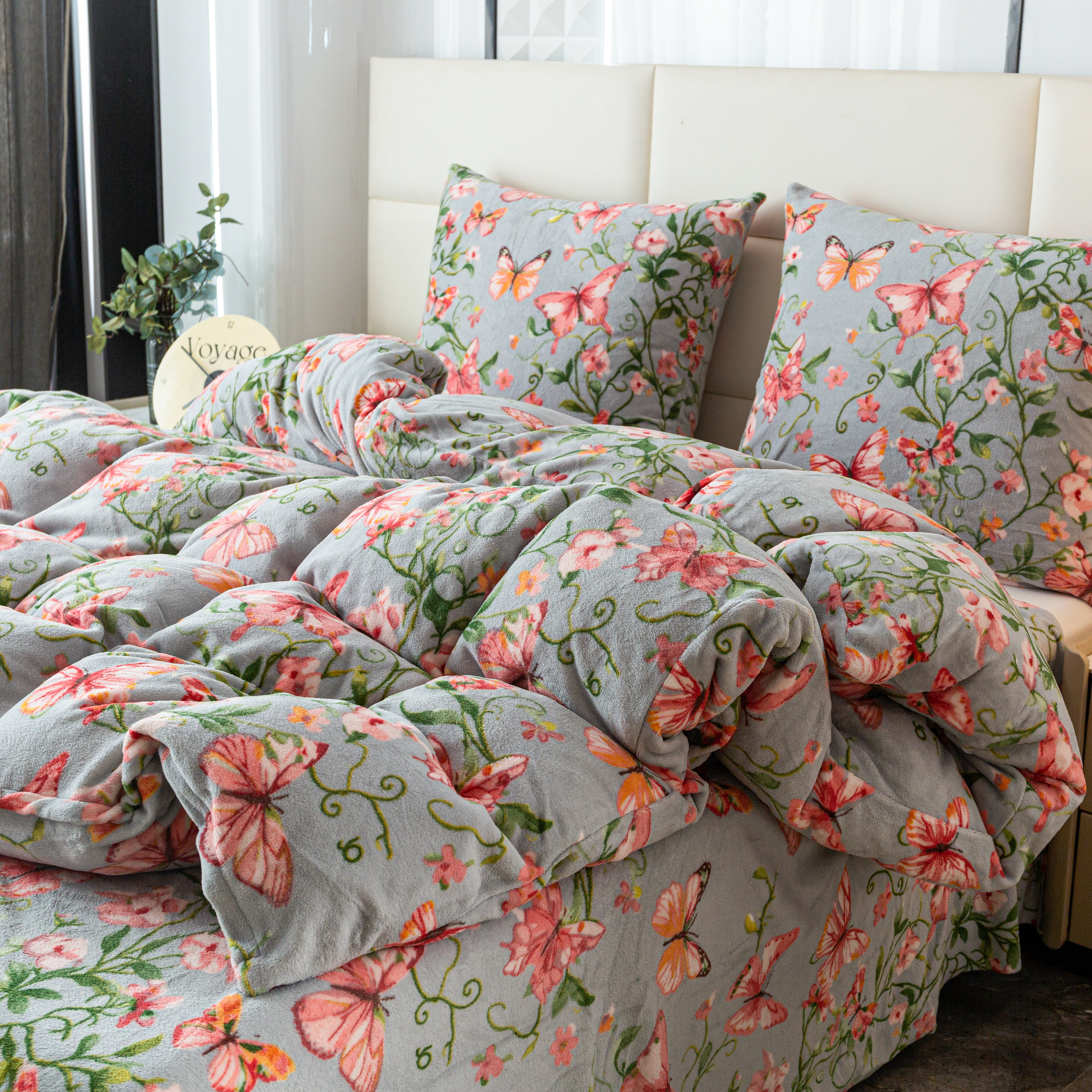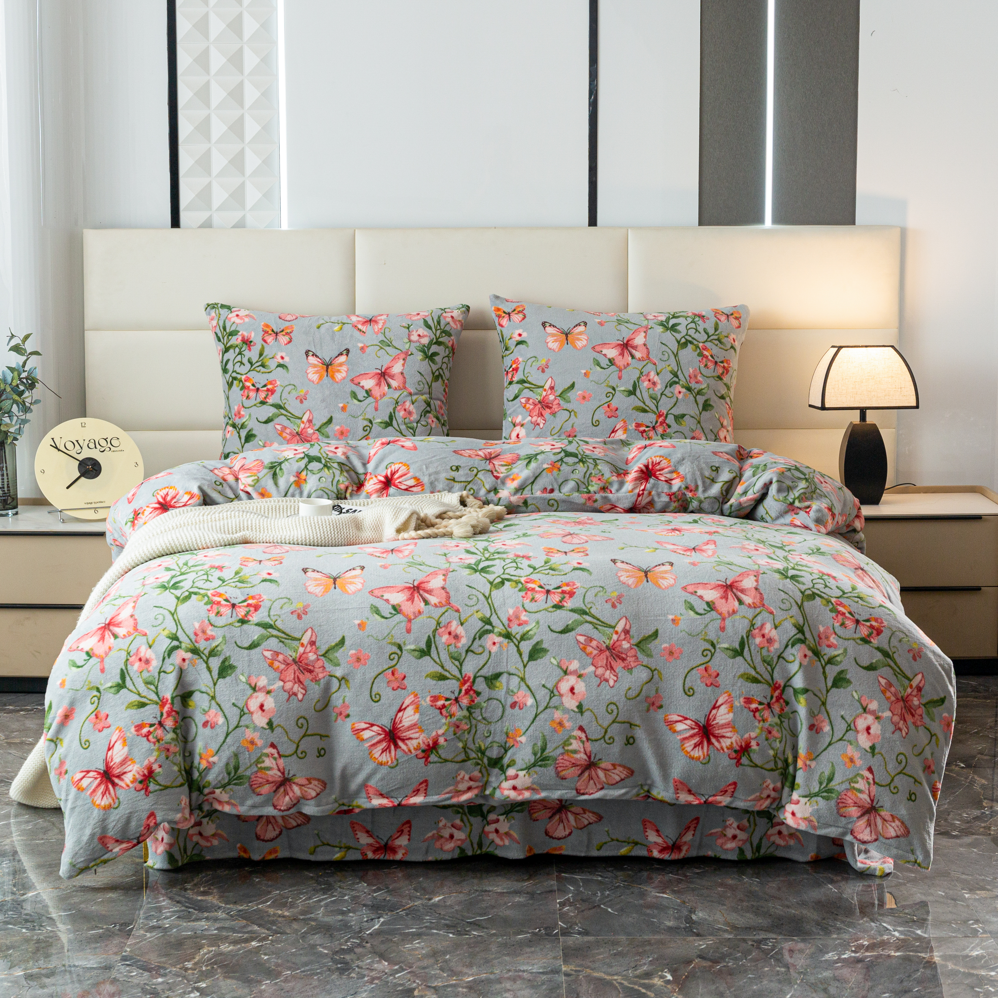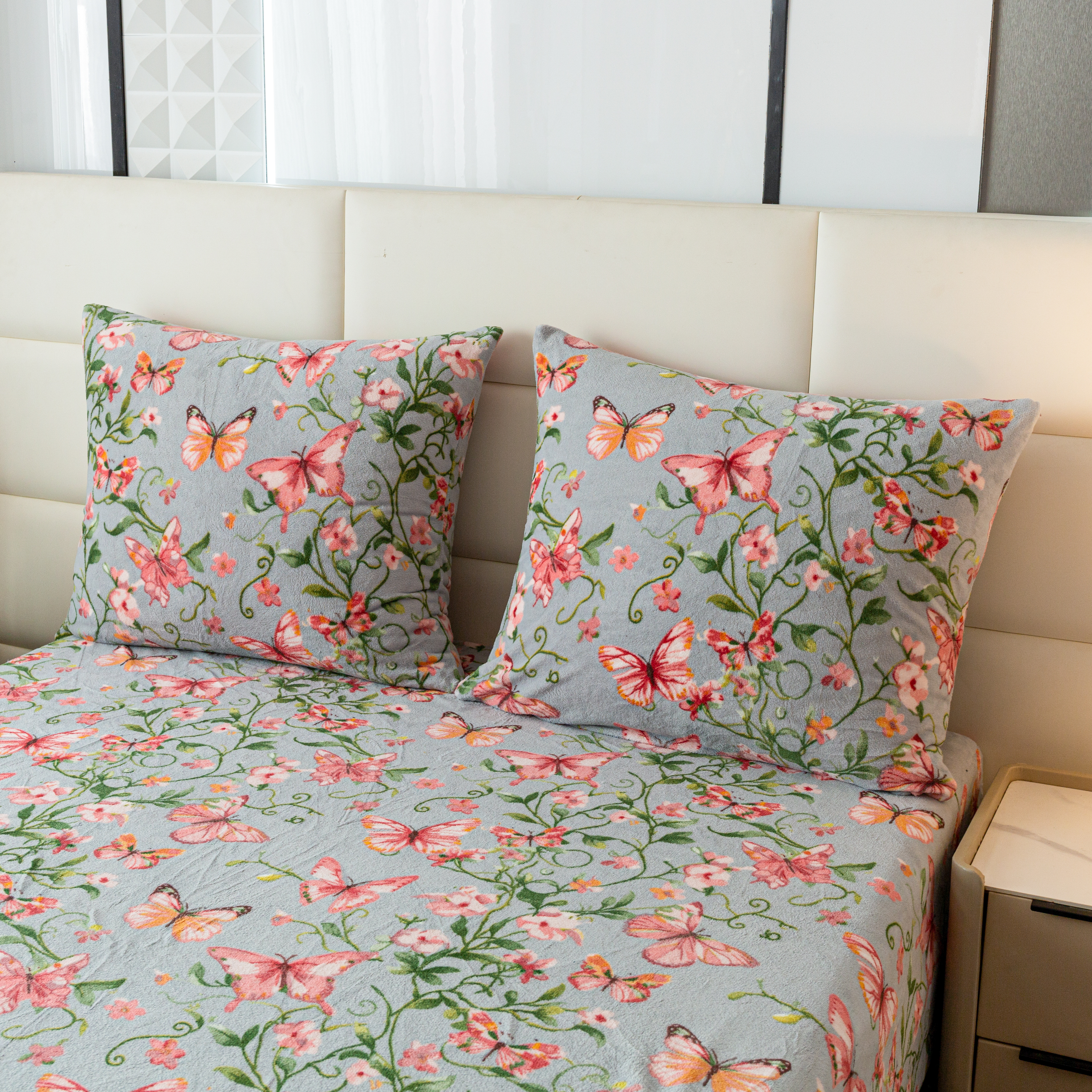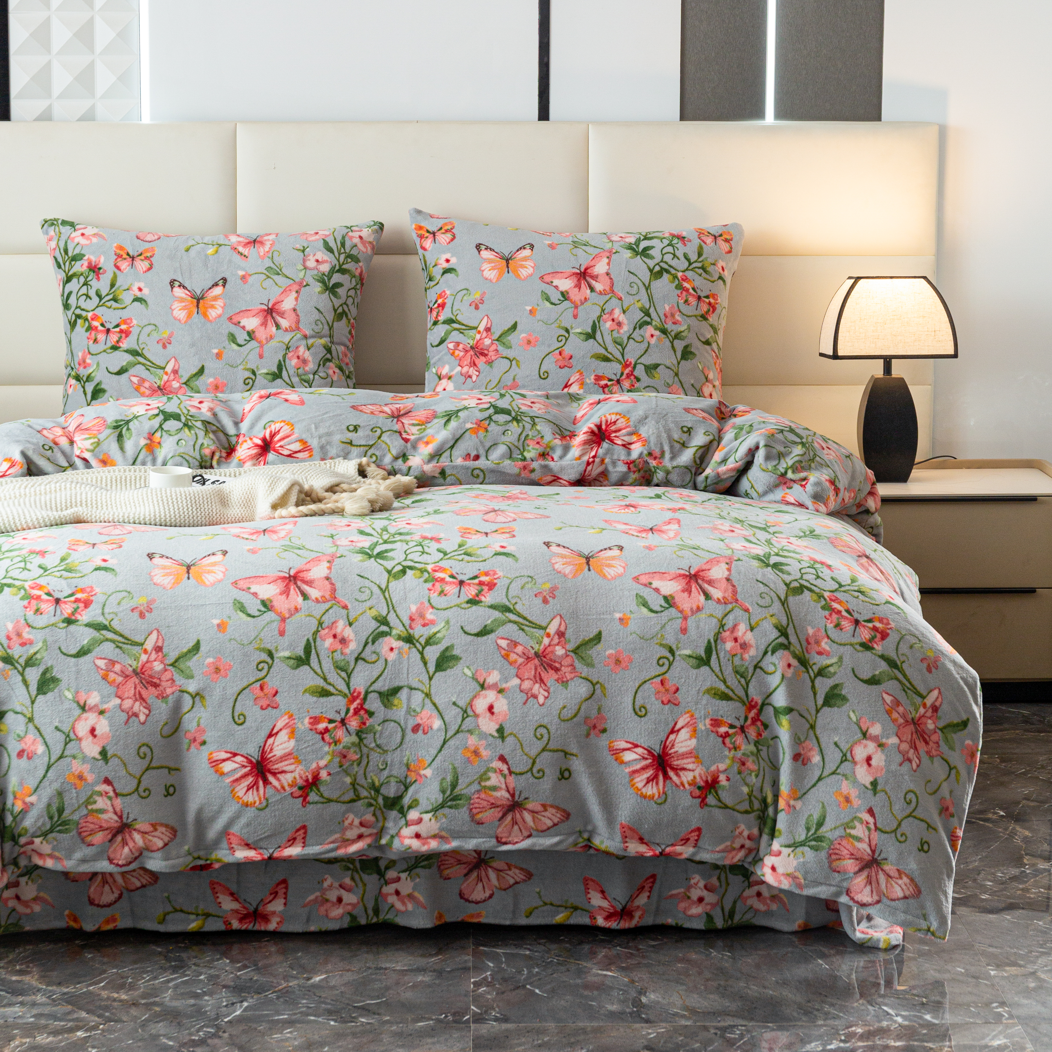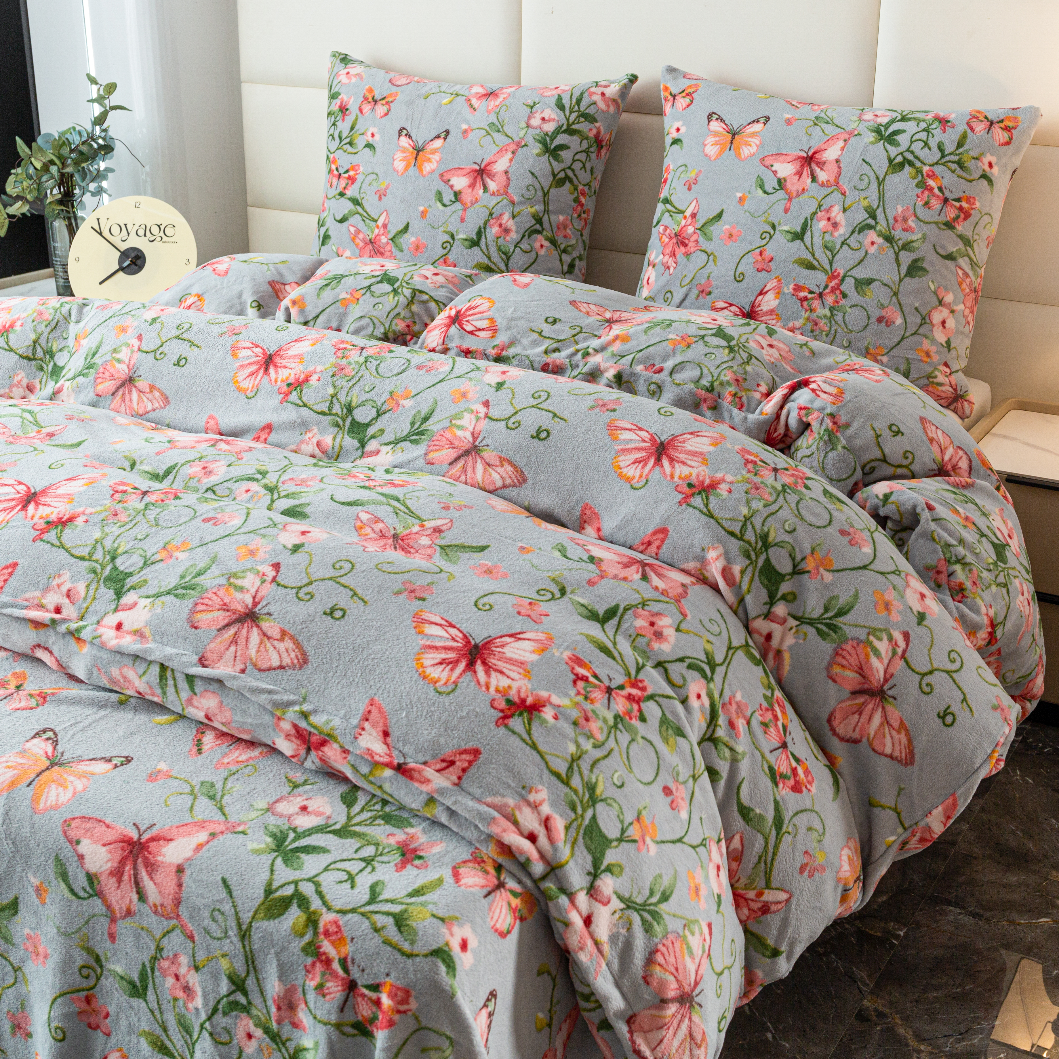 szara pościel z mikrofibry miś plusz motyle SHY-3140 COTTON WORLD