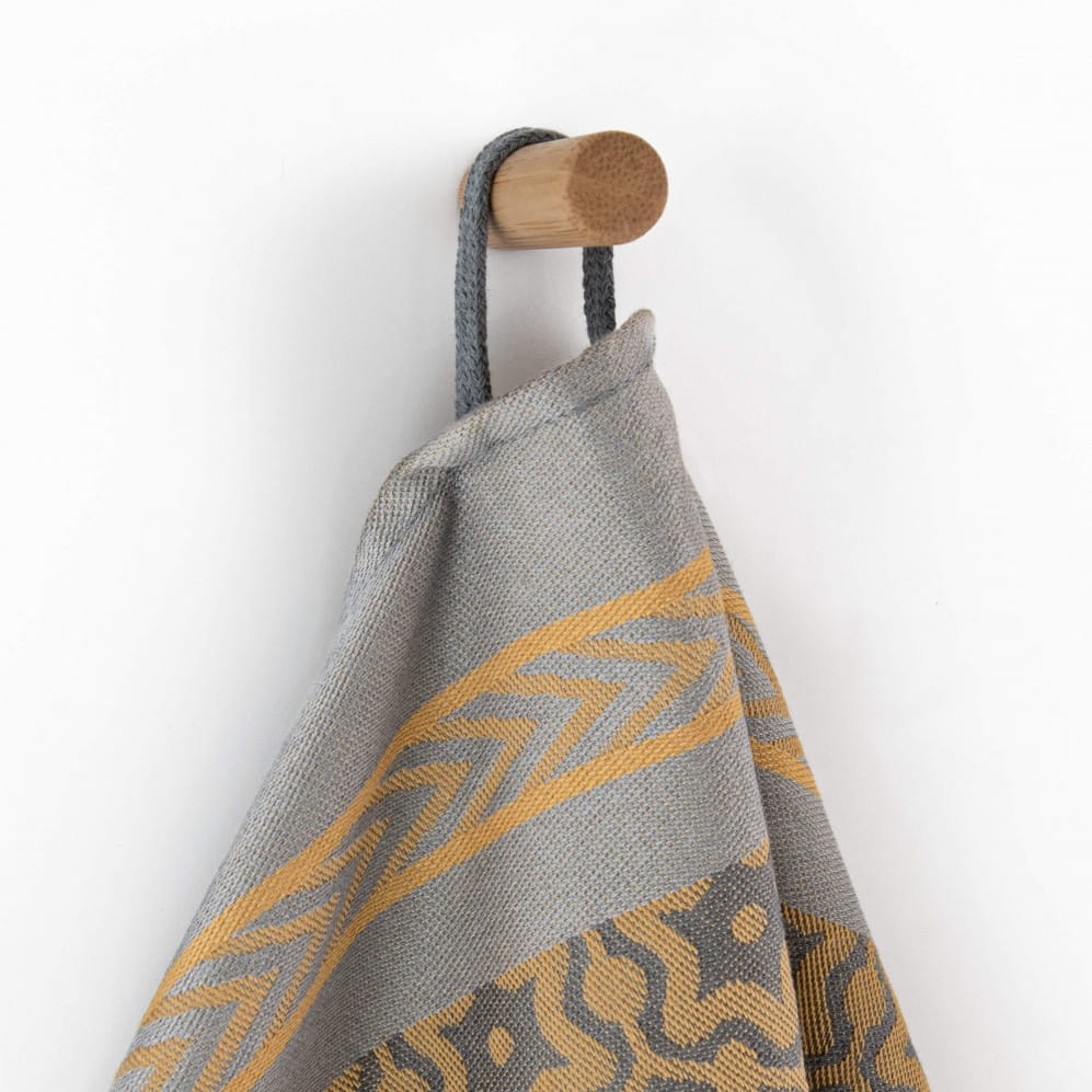 Ściereczka Marsala Gold w kolorze szarym 50x70 to ukłon w stronę natury i jej najpiękniejszych barw. Wykonana w 100% z bawełny organicznej, z certyfikatem GOTS, jest nie tylko przyjemna w dotyku, ale także trwała i przyjazna dla środowiska. Żakardowy splot sprawia, że wzór pozostaje wyrazisty przez długi czas, a gramatura 240 g/m² zapewnia świetną chłonność i wytrzymałość w codziennym użytkowaniu.