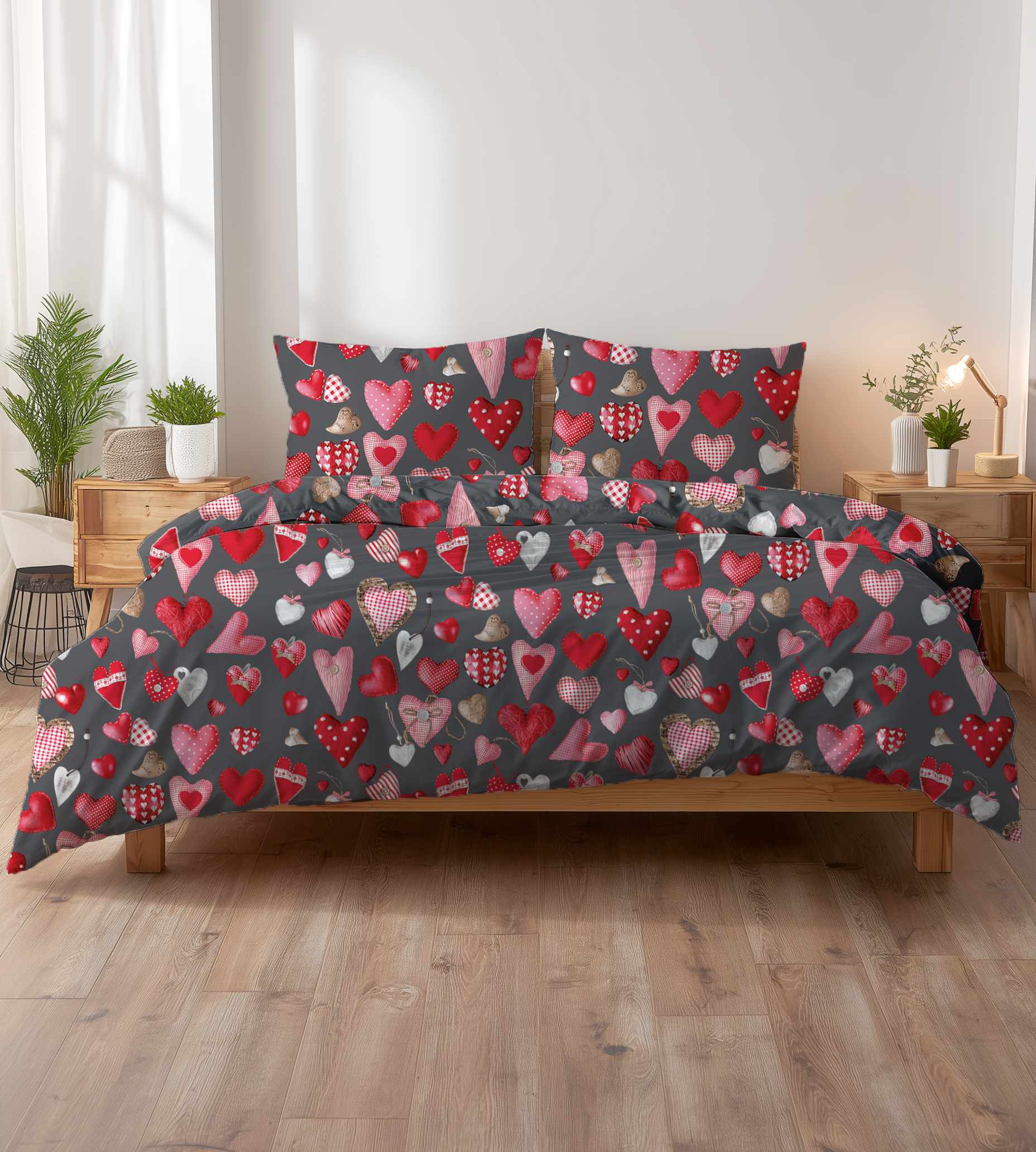 szare walentynki pościel kora bawełniana luksusowa 160x200