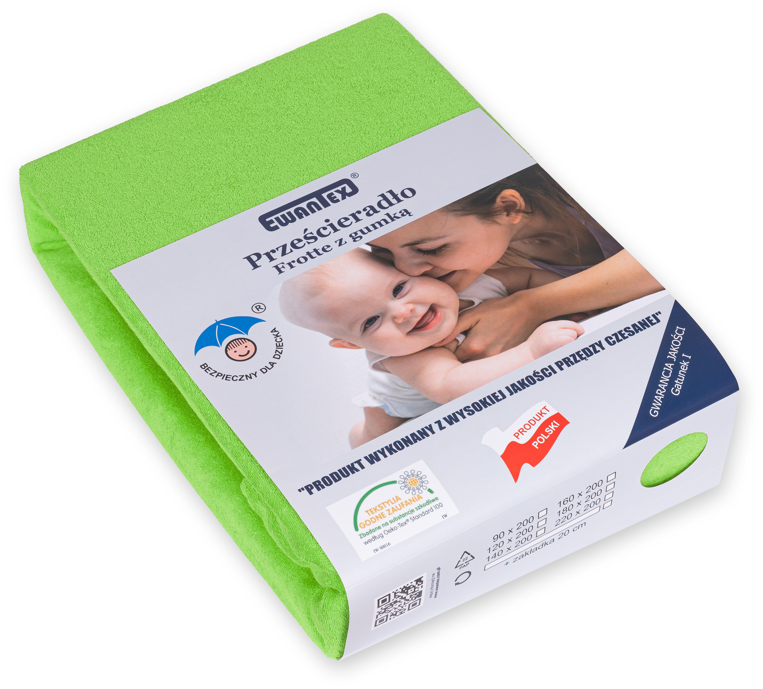Prześcieradło z gumką idealnie pasuje na materac o wysokości do 17 cm. Gumka została wszyta w tunelu, który został dokładnie obszyty 5 igłowym overlockiem co gwarantuje nam solidność i stabilność gumki podczas użytkowania. Dzianina do uszycia prześcieradła produkowana jest w Polsce i posiada Certyfikat Oeko-Tex Standard 100 co oznacza, że została przebadana i nie zawiera substancji szkodliwych dla człowieka oraz substancji powodujących alergie.