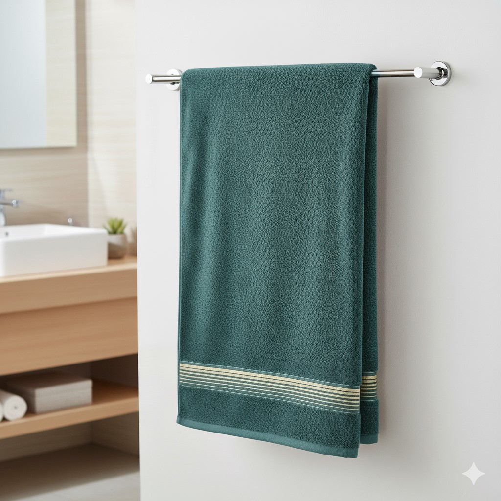 Ręcznik bawełniany Montreal w kolorze petrol został wyprodukowany przez markę Legs. Wykonany z wysokiej jakości przędzy frotte, składającej się w 100% bawełny, która zapewnia wysokie właściwości higroskopijne czyli zdolność pochłaniania wilgoci. Charakteryzuje się wysoką i najbardziej optymalną do codziennego użytku gramaturą 400 g/m², dzięki której szybko schnie. Dodatkowo ręcznik Montreal cechuje się przyjemnym i miękkim chwytem z piękną złotą bordiurą. Elegancka ale minimalistyczna część ozdobna świetnie odnajdzie się w klasycznych jak i nowoczesnych wnętrzach tym bardziej, że ręcznik występuje w bardzo bogatej kolorystyce. Z pewnością zadowolą klientów szukających wysokiej jakości w połączeniu z atrakcyjną ceną i eleganckim designem.