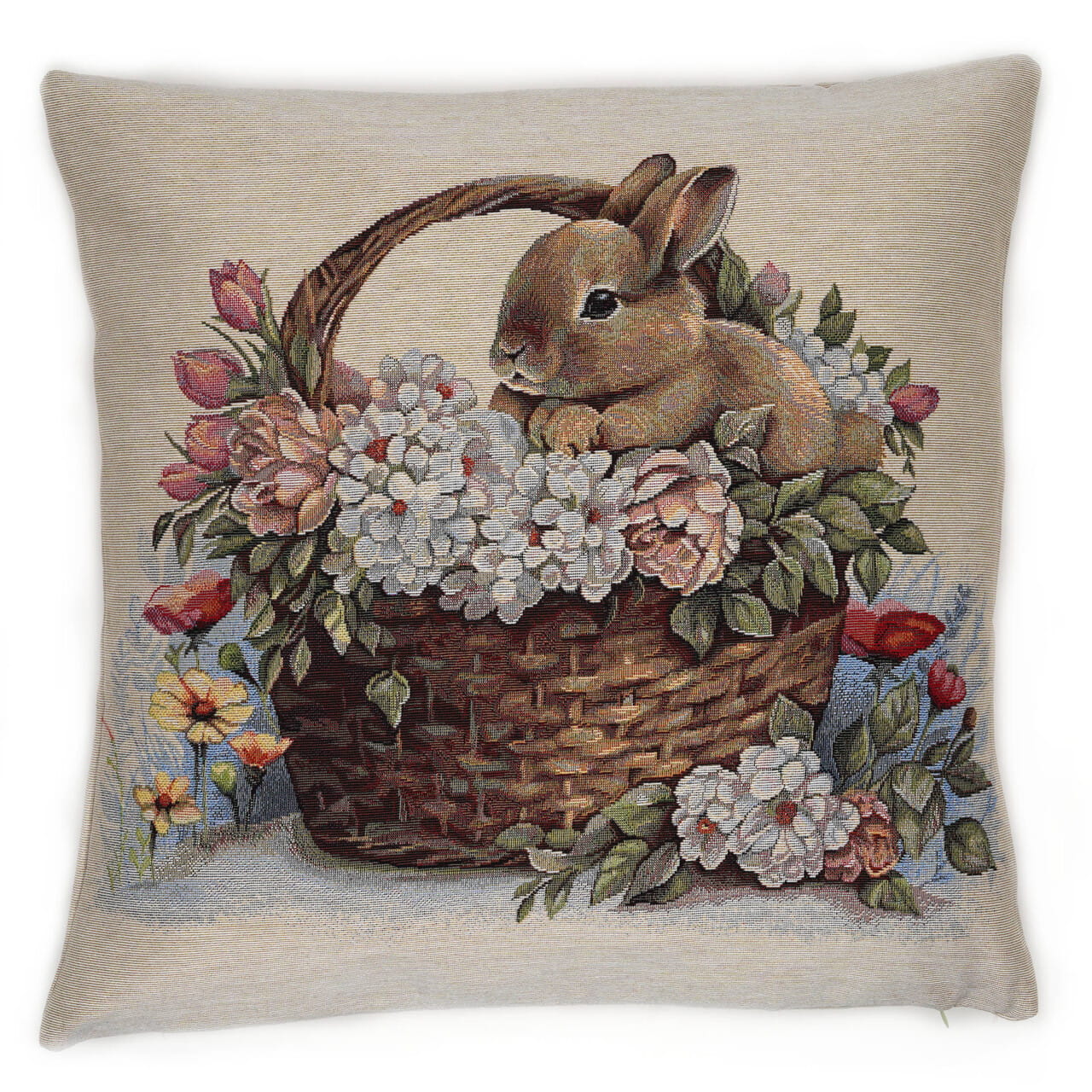 Piękna dekoracyjna poszewka Gobelin w Koszyku 45x45 na poduszkę elegancko ozdobi Twoje wnętrze. Zasuwana na zamek błyskawiczny. Poszewka dwustronna.