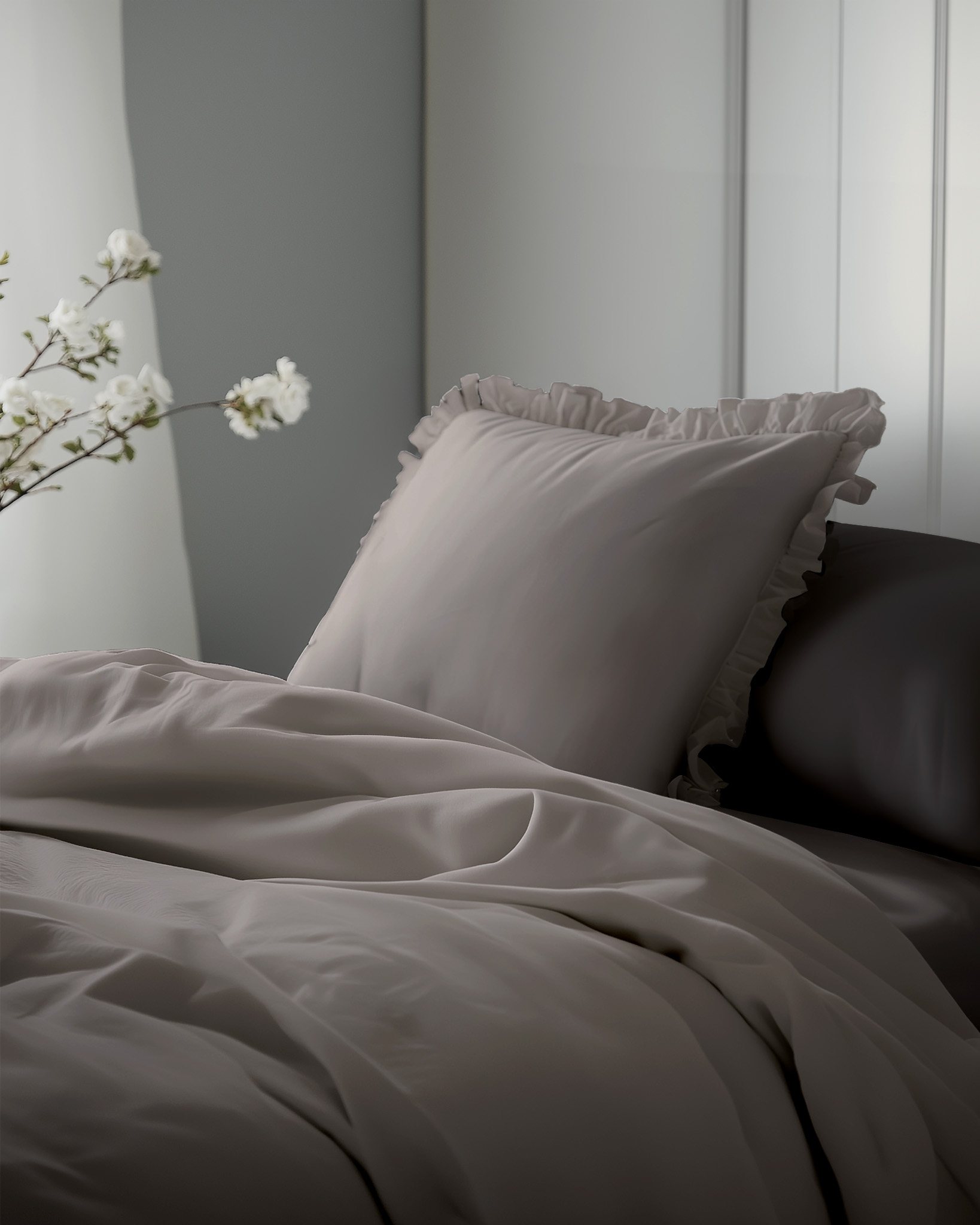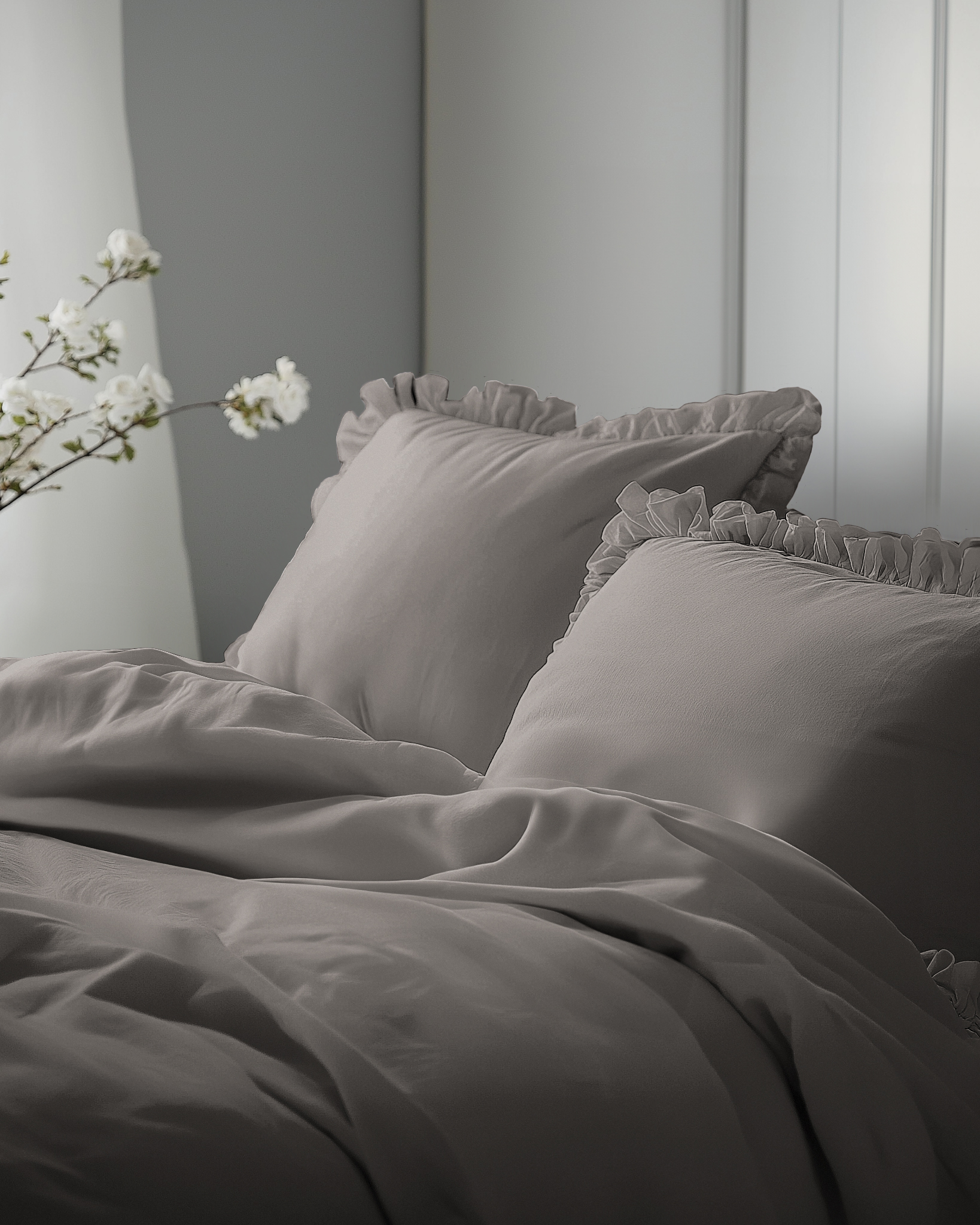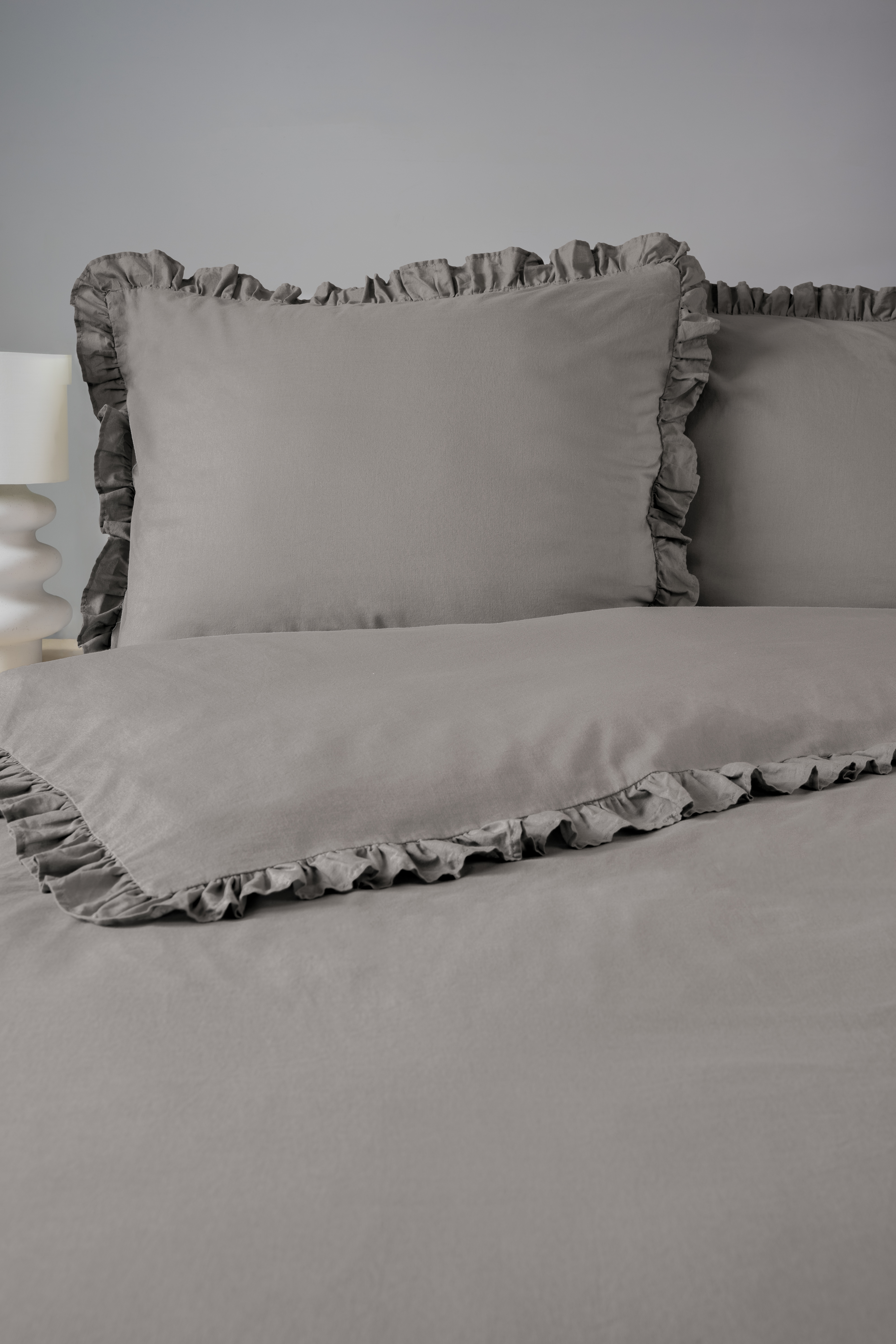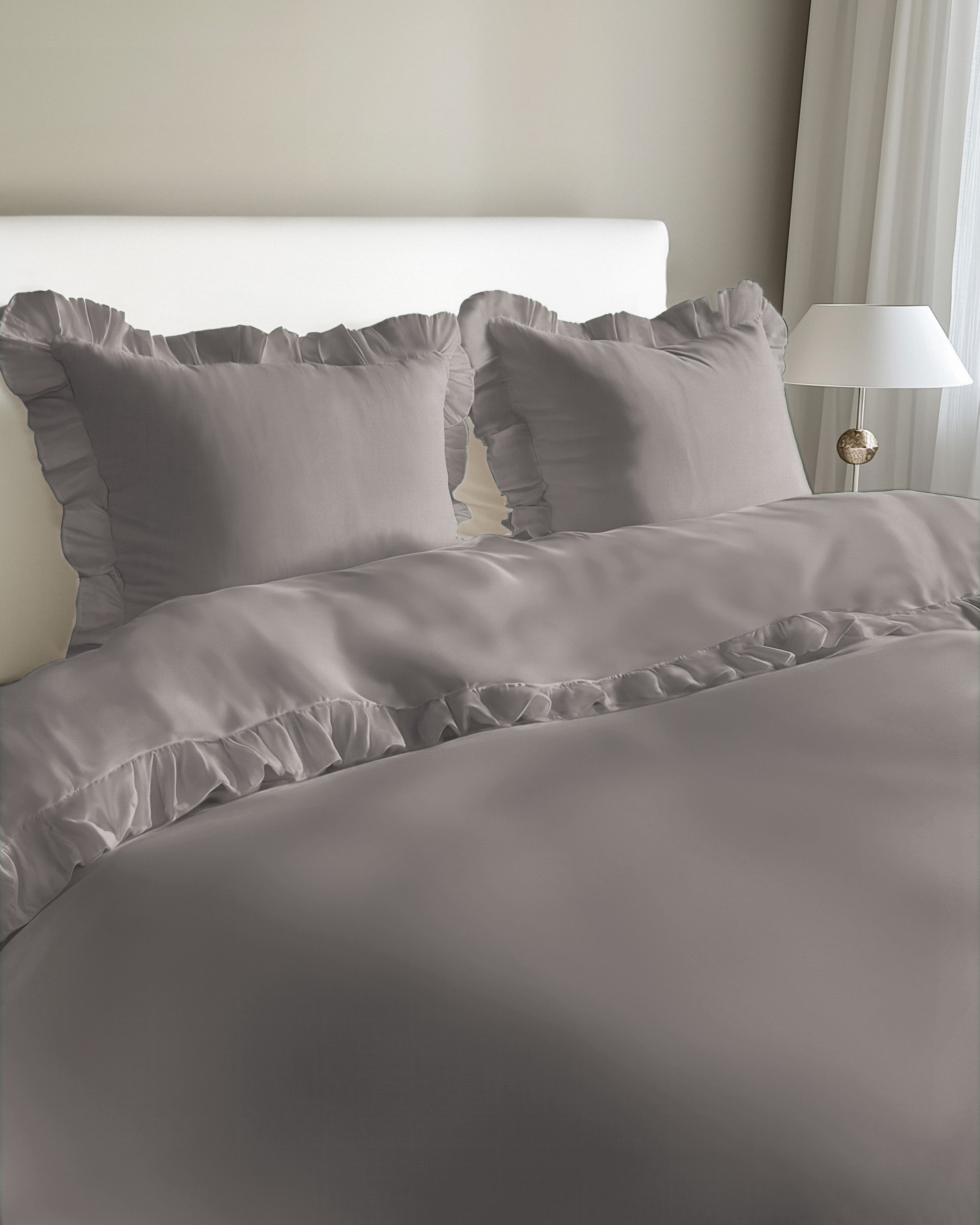 warm grey pościel bawełniana z falbanką PURE DETEXPOL