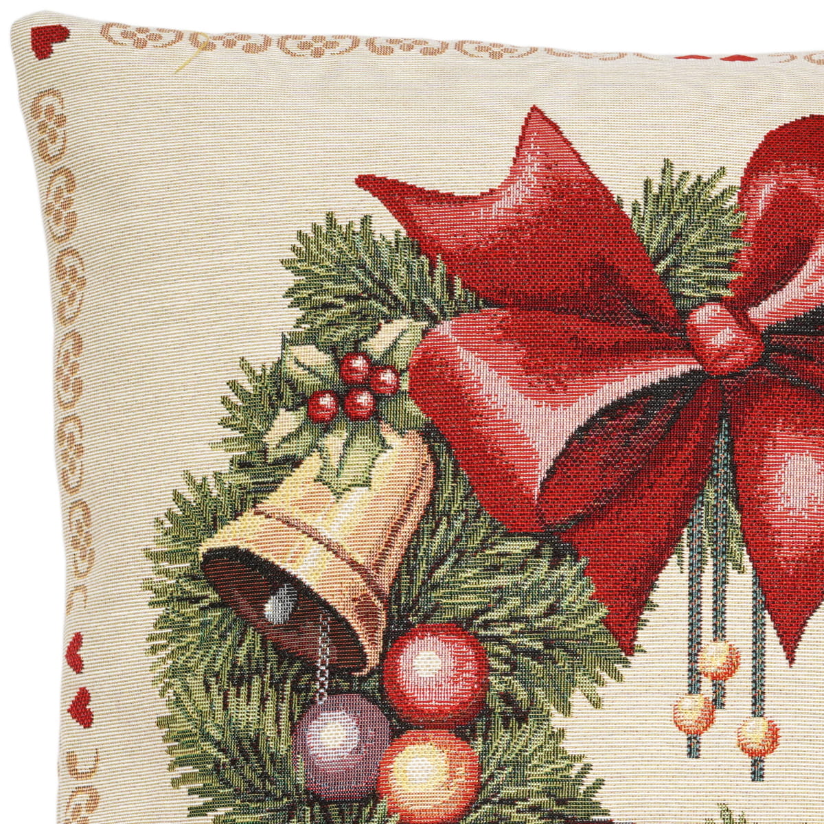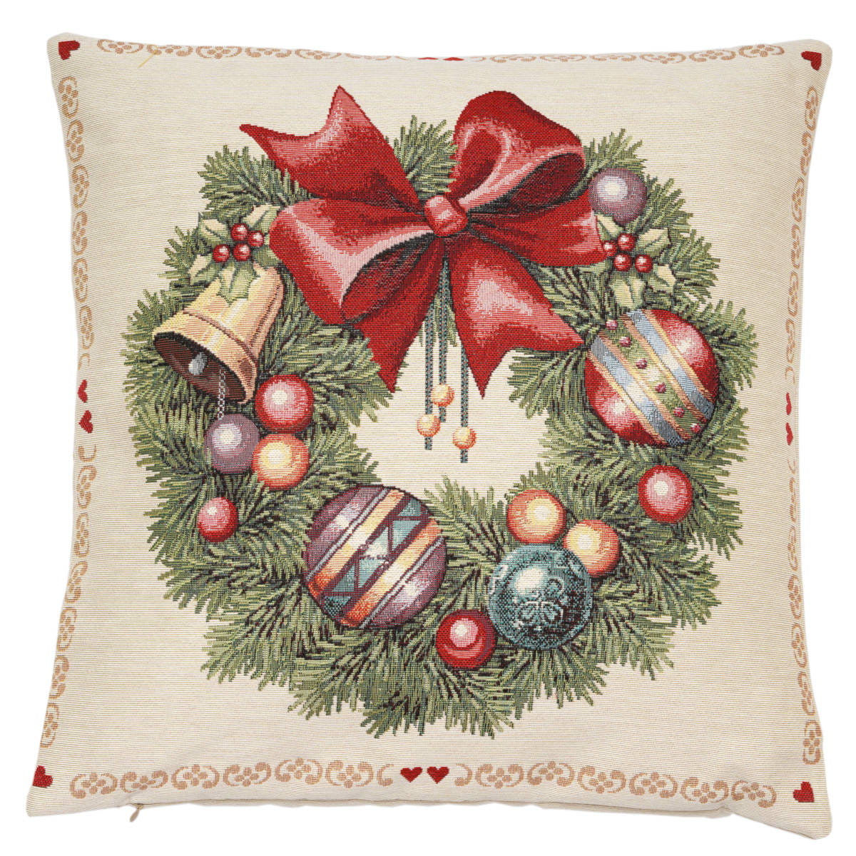 Piękna dekoracyjna poszewka Gobelin Wianek Świąteczny 45x45 na poduszkę elegancko ozdobi Twoje wnętrze. Zasuwana na zamek błyskawiczny. Poszewka dwustronna.