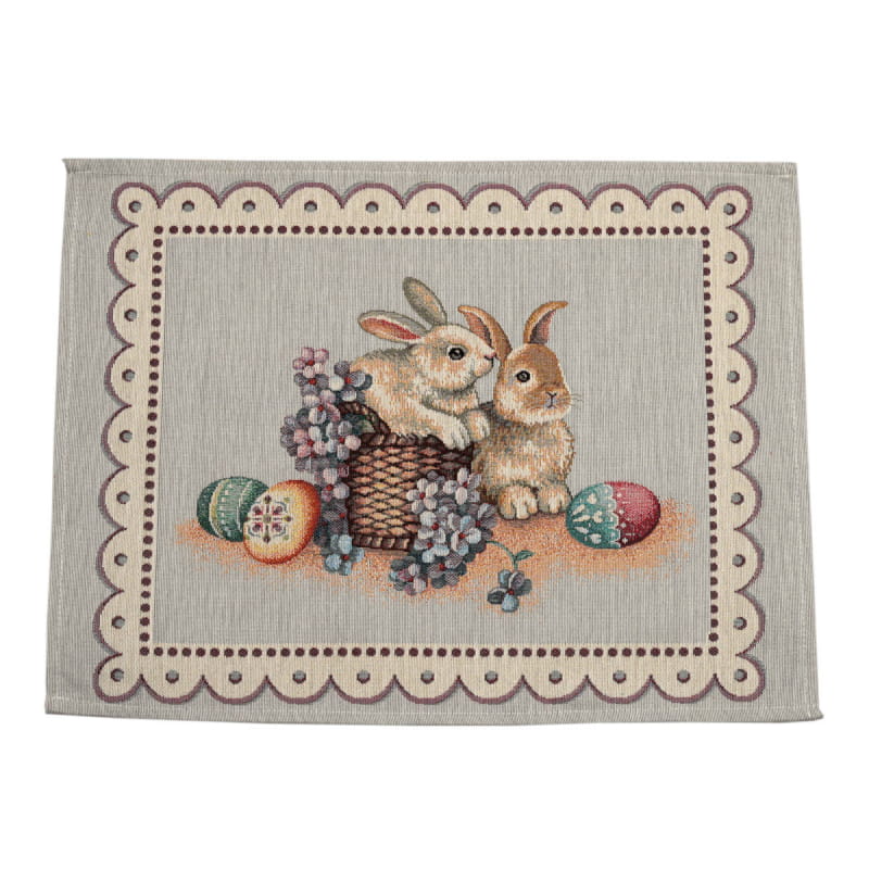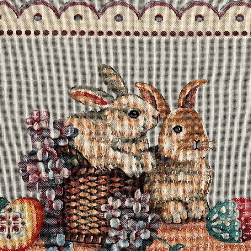Ekskluzywny obrus Gobelin Zając z Szafirkami jest dopełnieniem i ozdobą każdego zastawionego stołu. Wykonany z precyzją z plamoodpornej tkaniny świetnie wygląda i eksponuje każdą elegancką zastawę z efektownymi zdobieniami. Będzie się cudownie prezentował w tradycyjnych wnętrzach, jak i w nowocześnie urządzonych pomieszczeniach. Produkt wyprodukowany w Polsce.