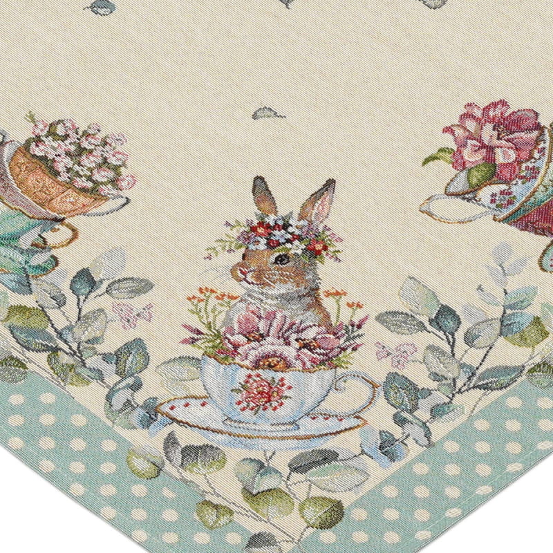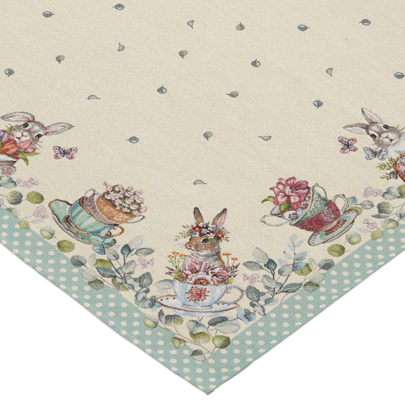 Ekskluzywny obrus Gobelin Zając Zielone Kropki jest dopełnieniem i ozdobą każdego zastawionego stołu. Wykonany z precyzją z plamoodpornej tkaniny świetnie wygląda i eksponuje każdą elegancką zastawę z efektownymi zdobieniami. Będzie się cudownie prezentował w tradycyjnych wnętrzach, jak i w nowocześnie urządzonych pomieszczeniach. Produkt wyprodukowany w Polsce.