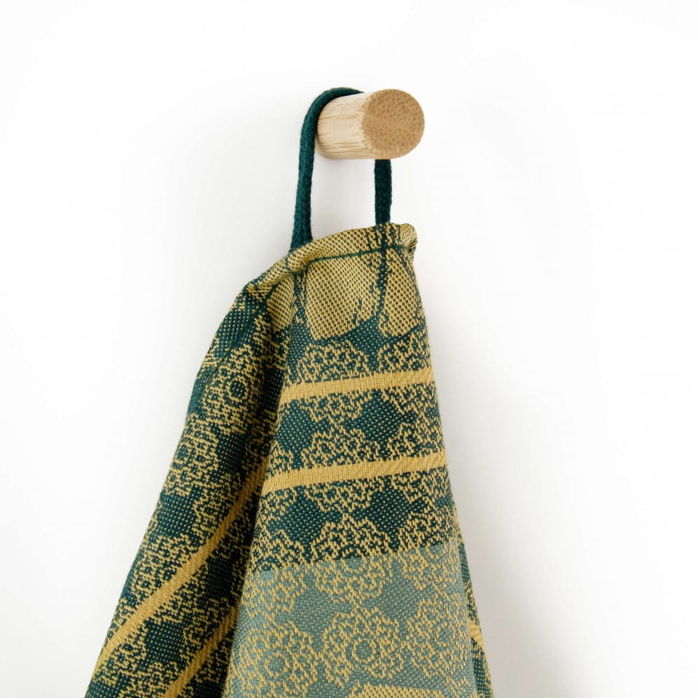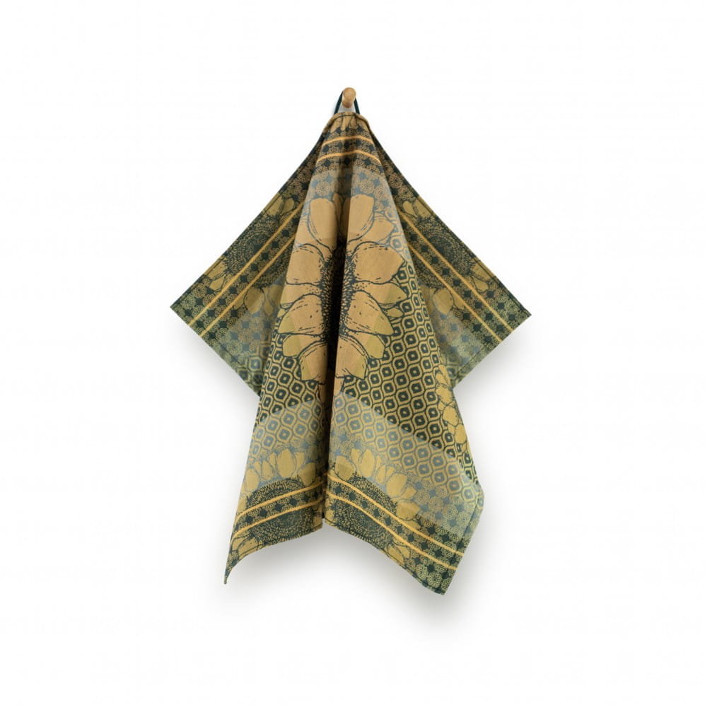 Ściereczka Sunflowers w kolorze zielonym 50x70 to ukłon w stronę natury i jej najpiękniejszych barw. Wykonana w 100% z bawełny organicznej, z certyfikatem GOTS, jest nie tylko przyjemna w dotyku, ale także trwała i przyjazna dla środowiska. Żakardowy splot sprawia, że wzór pozostaje wyrazisty przez długi czas, a gramatura 240 g/m² zapewnia świetną chłonność i wytrzymałość w codziennym użytkowaniu.