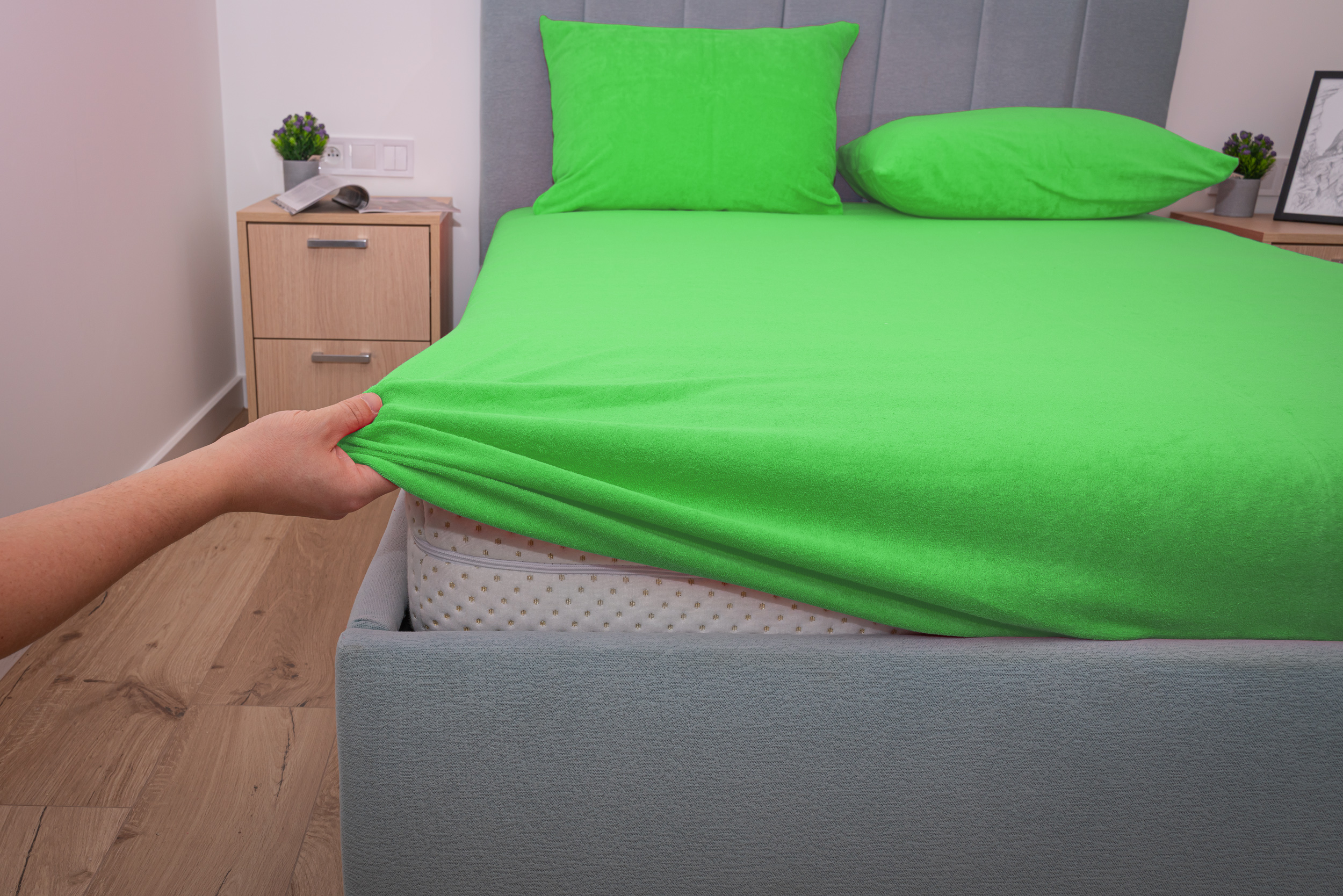 zielone PRZEŚCIERADŁO FROTTE Z GUMKĄ