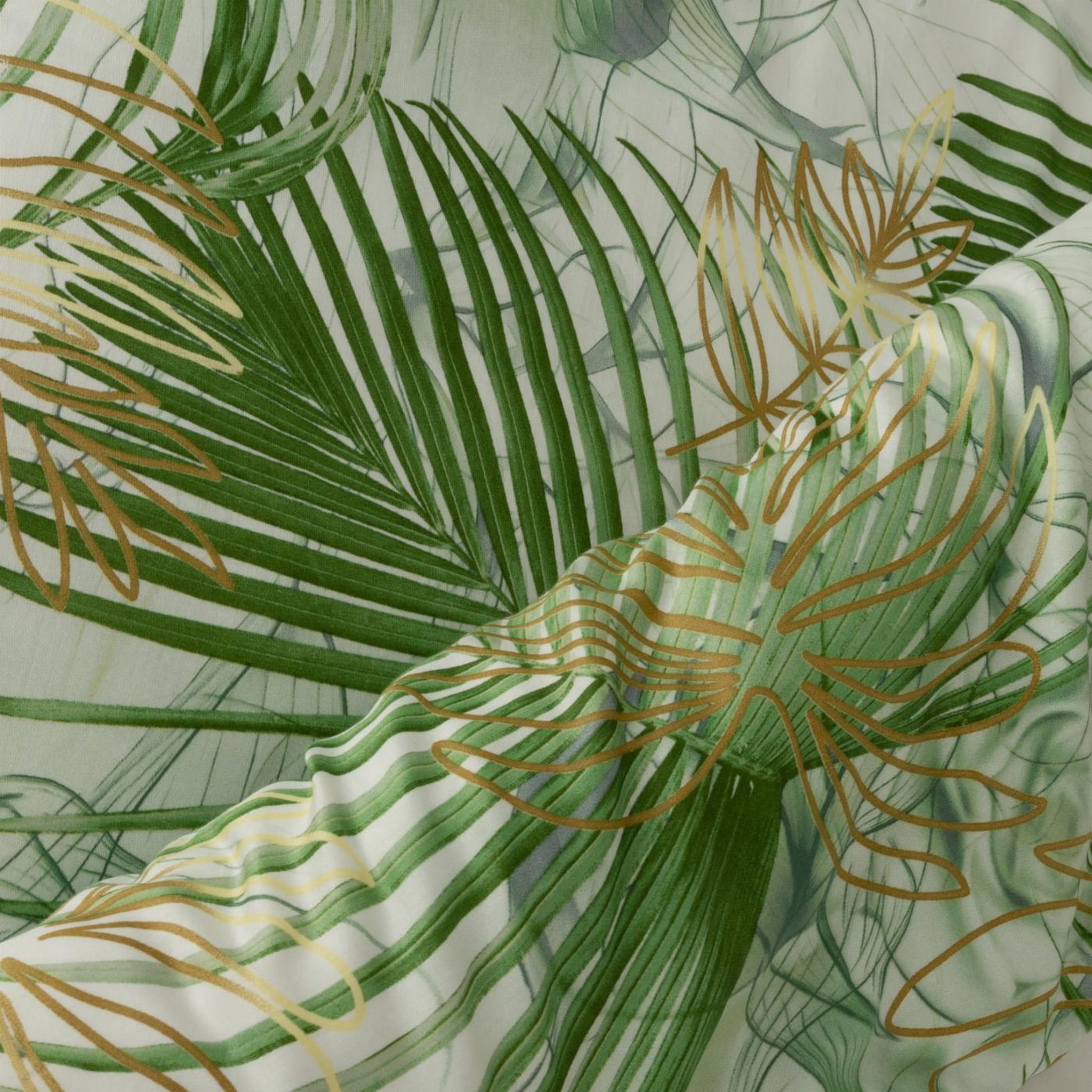 zielono złote paprocie pościel satynowa NELLY 4 EUROFIRANY z motywem roślinnym