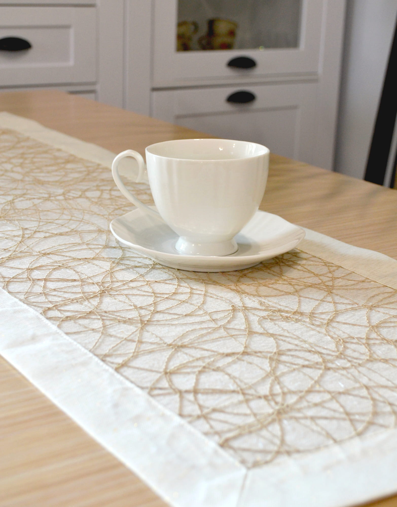 Obrus dekoracyjny błyszczący Glamour 05 jest dopełnieniem i ozdobą każdego zastawionego stołu. Wykonany z precyzją świetnie wygląda i eksponuje każdą elegancką zastawę. Będzie się cudownie prezentował w tradycyjnych wnętrzach, jak i w nowocześnie urządzonych pomieszczeniach.